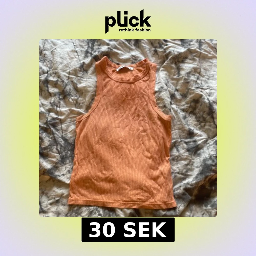 Säljer en snygg orange ribbad topp med ärmlös design och rund halsringning. Perfekt för varma dagar och enkel att matcha med jeans eller kjol.