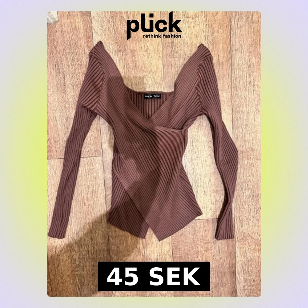Säljer en ribbad brun omlottopp från SHEIN med lång ärm och v-ringad hals. Toppen har en figurnära passform och är tillverkad i stretchigt material som sitter snyggt på kroppen. Perfekt för dig som gillar trendiga och stilrena plagg.