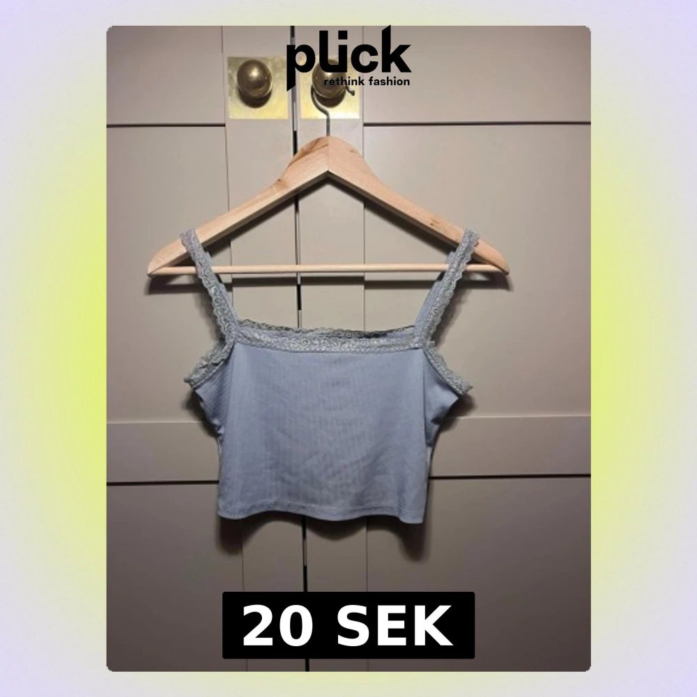 Fint ljusblått linne med spets längs överkanten. Skönt material. Inga tecken på användning.