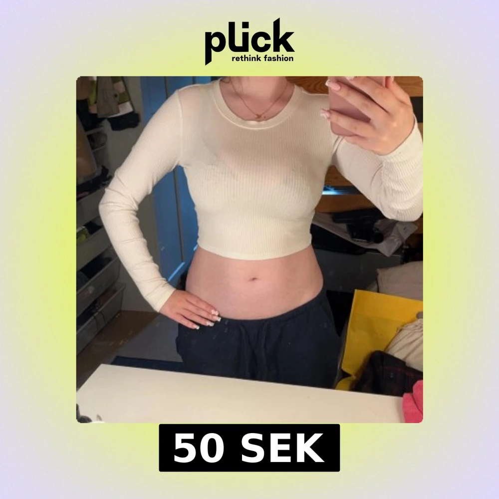 Snygg croppad topp i ljusbeige med ribbad struktur och långa ärmar. Perfekt för dig som gillar en enkel men trendig stil. Mjuk och stretchig, sitter tajt och framhäver figuren. Rund halsringning och stilren look.