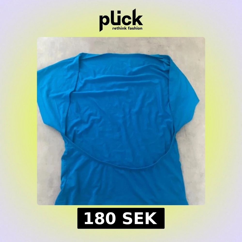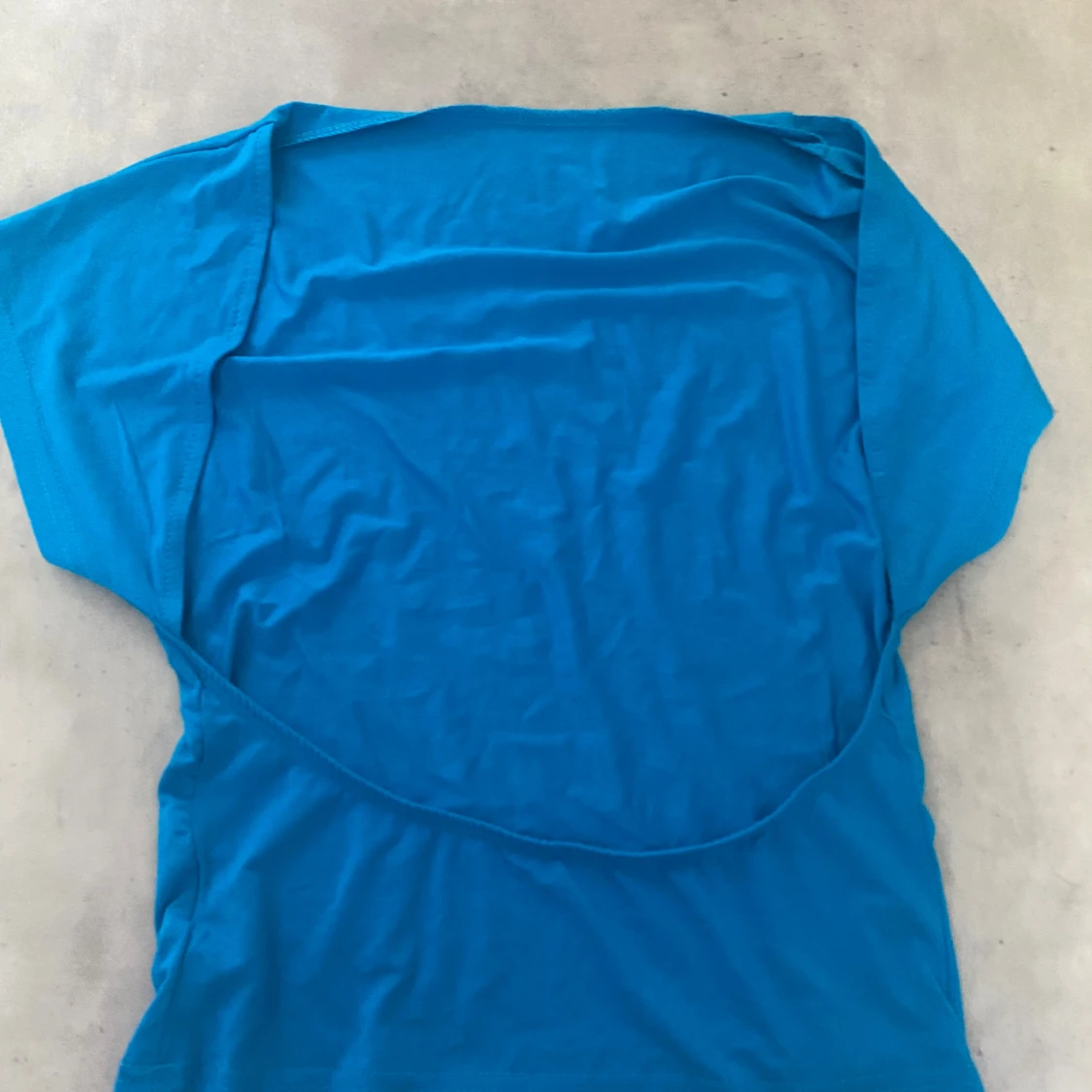 En enkel och stilren blå topp med korta ärmar och rund hals. Öppen rygg där bak