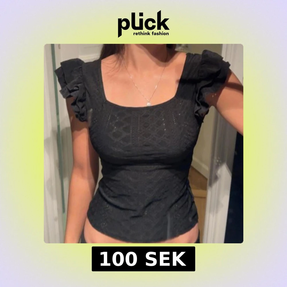 Snygg svart topp med volangärmar och fyrkantig halsringning. Toppen har ett subtilt mönster och är perfekt för en stilren look. Passar bra till både jeans och kjol.
