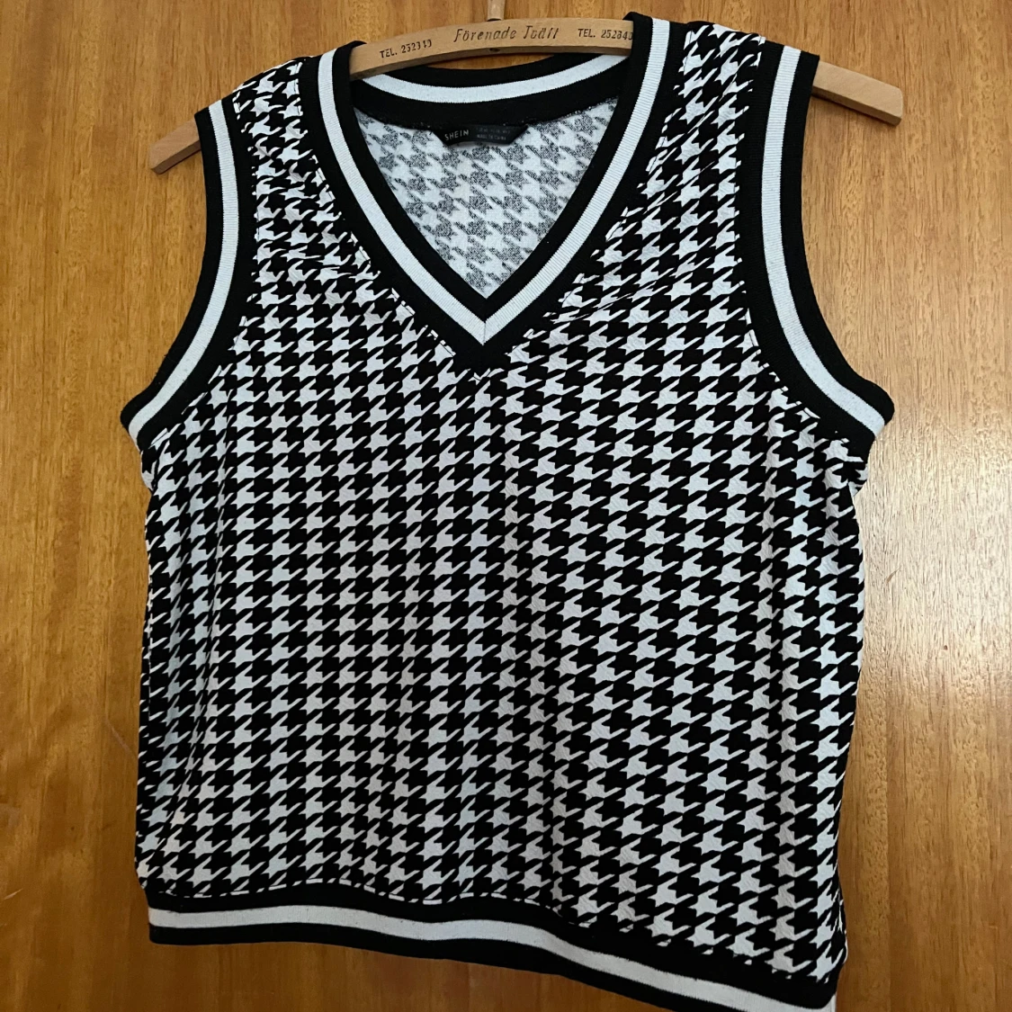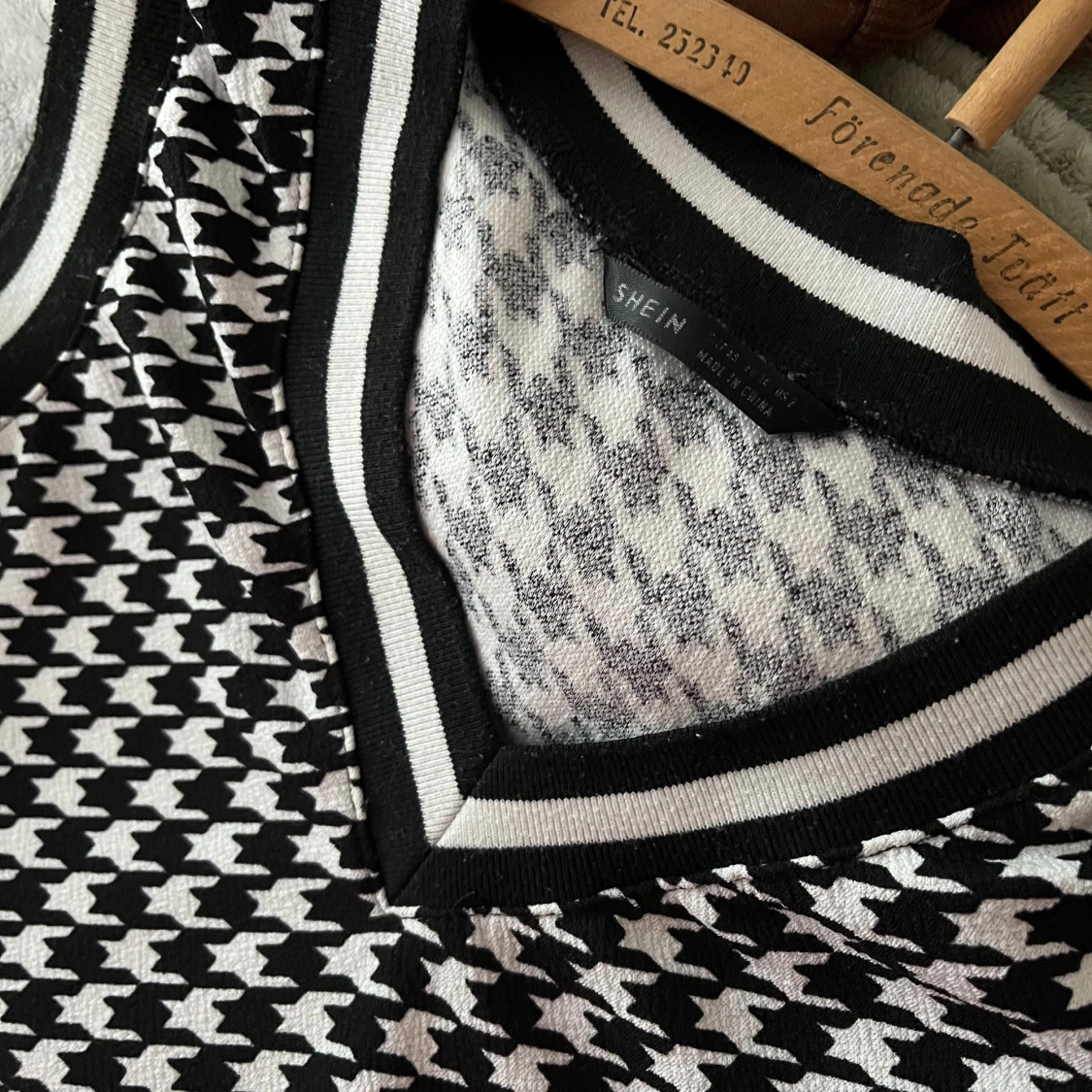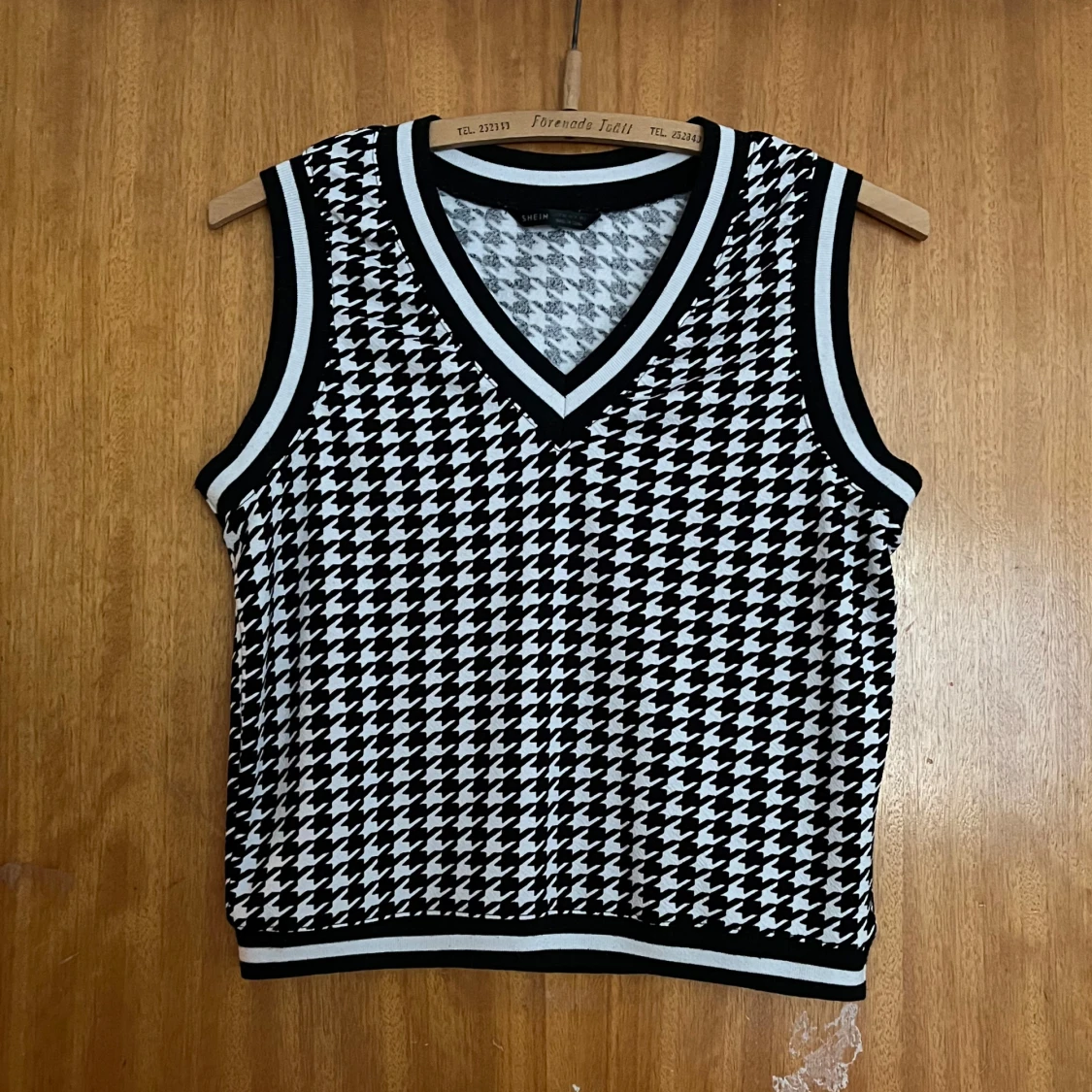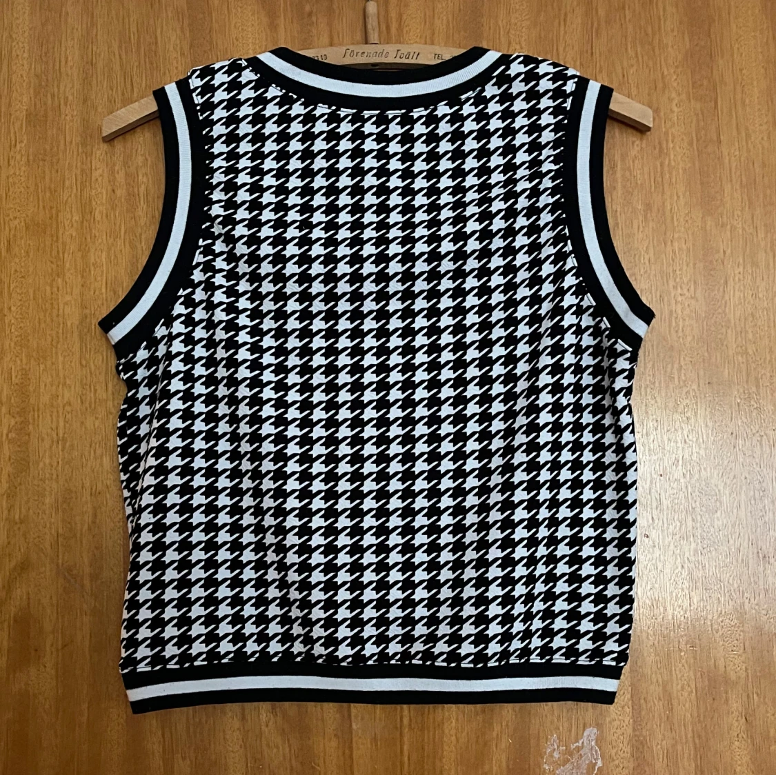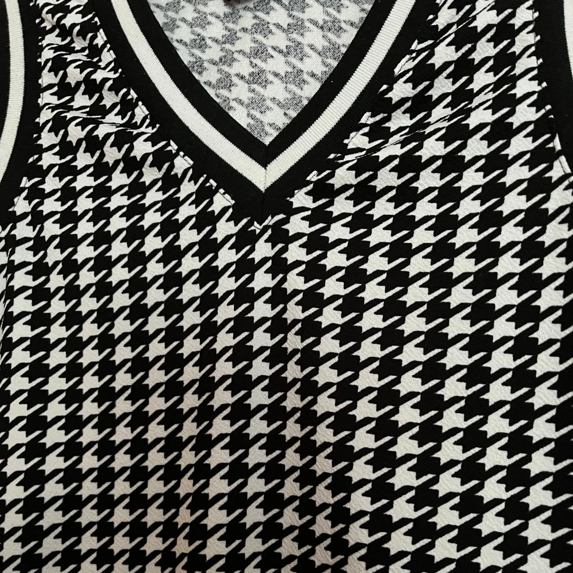 Väst från SHEIN i svart och vitt med klassiskt hundtandsmönster. Västen har v-ringning och ribbade kanter i svart och vitt. Markerad som XS men skulle mer säga S-M då den är väldigt oversized!❤️
