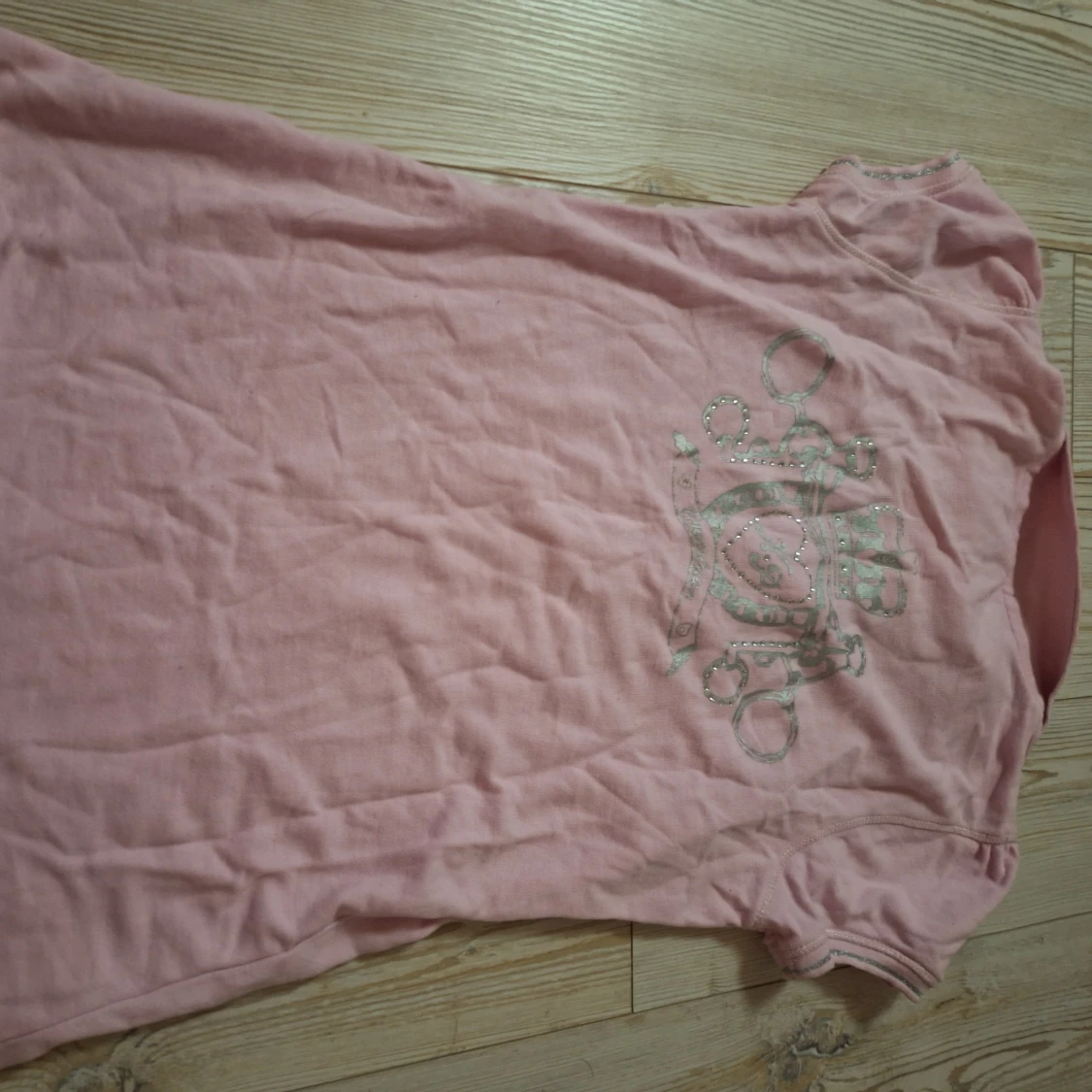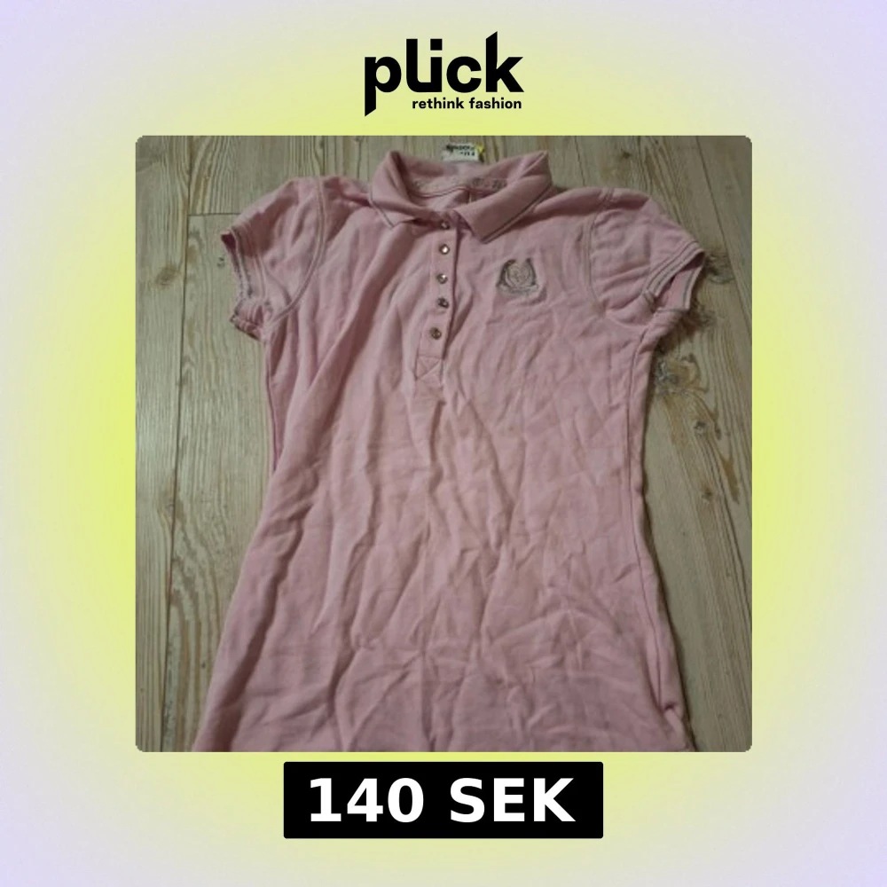 Supersöt rosa pikétopp med glittriga strassknappar och silvrigt tryck både fram och bak. Topp med krage, korta ärmar och dekorativa detaljer som ger en sportig och söt vibe. Passar även som en kort klänning eftersom att den är relativt lång.