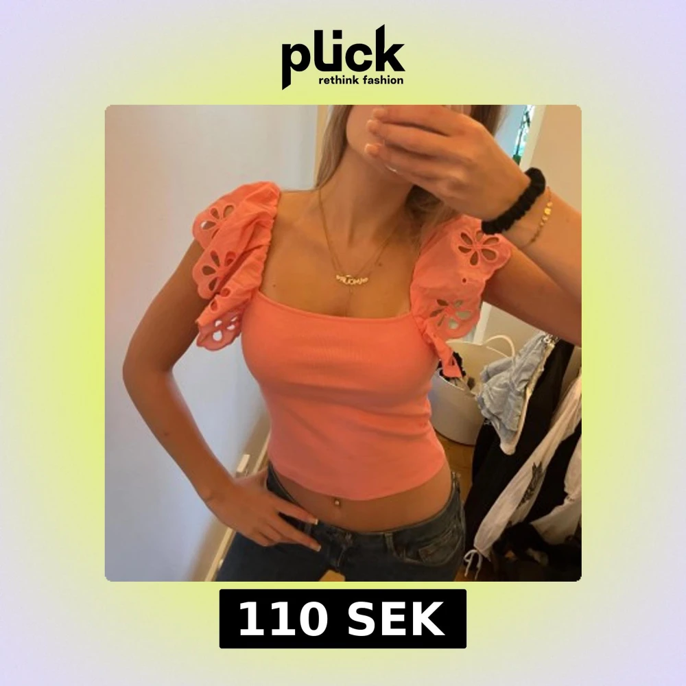 Superfin rosa croppad topp med breda volangärmar och utskurna blommönster på axlarna. Aldrig använd