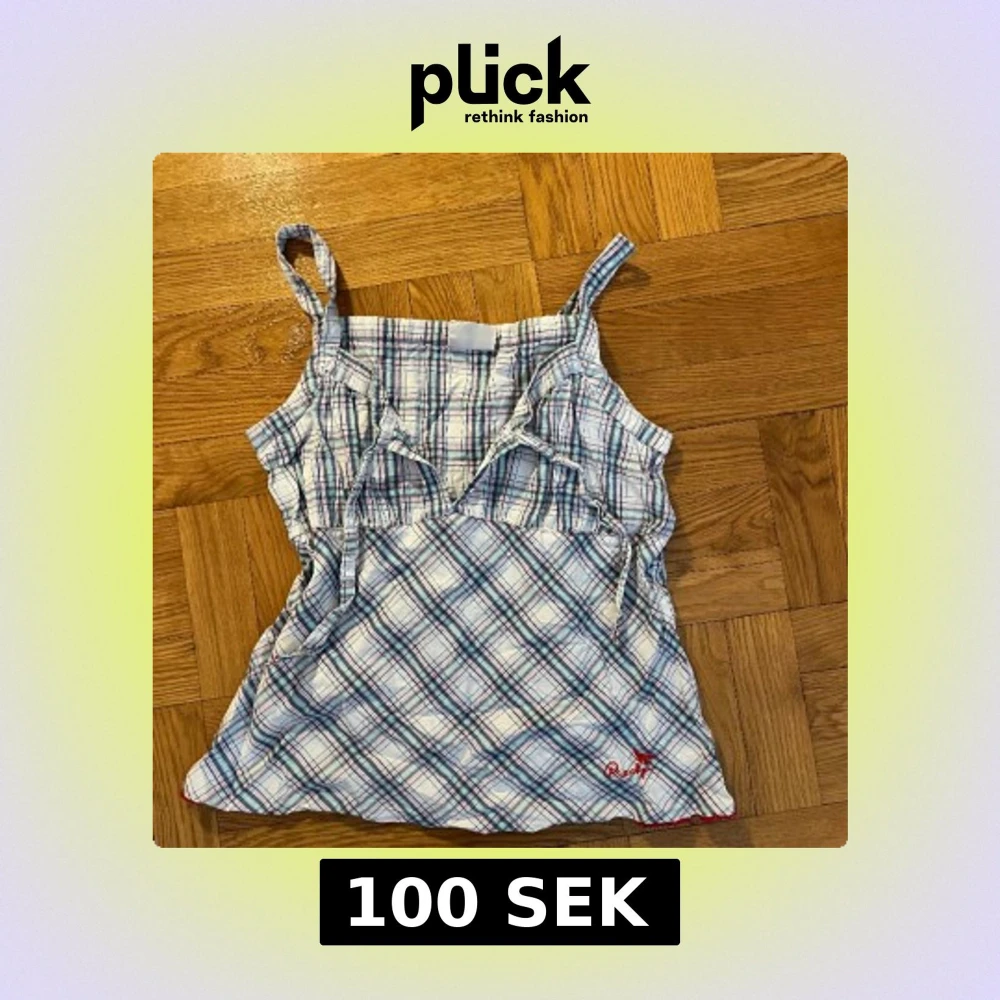 Supergulliga rutigt linne, köpt second hand men i toppenskick! Går att knyta men lika snygg att ha ”öppen”. Passar mig som brukar ha S