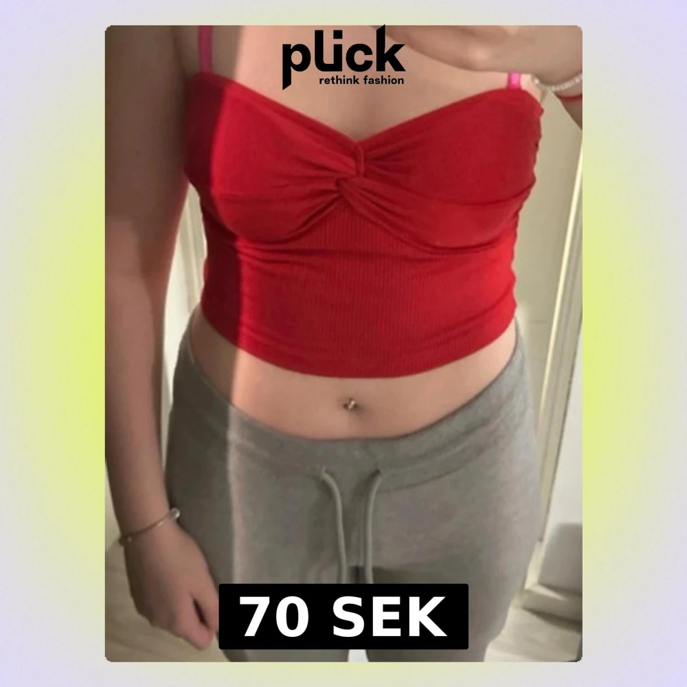 Trendig röd croppad linnetopp med ribbad struktur och twistad detalj framtill , perfekt för en snygg och enkel look. Materialet känns mjukt och stretchigt.