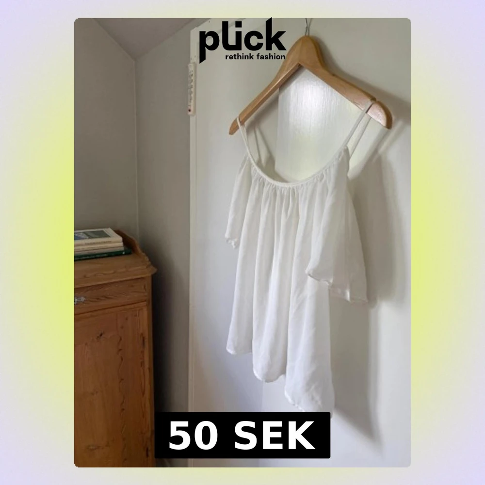 Superfin vit offshoulder blus med tunna axelband och vida, luftiga ärmar. Tyget är lätt och har en snygg fallande effekt. Perfekt för en fräsch och stilren look. Passar dig som gillar en luftig och avslappnad vibe. Var tvungen att klippa av lappen då den kliade. Storlek S/M