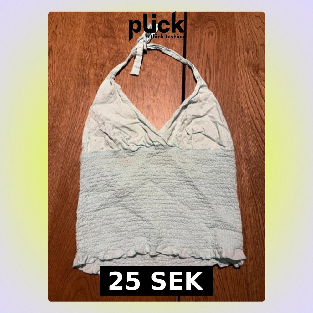 Supersöt ljusblå linnetopp med knyt i nacken och broderade blommor upptill. Toppen har smockad midja och en liten volangkant längst ner. Perfekt för varma dagar och ger en chill vibe med sin ärmlösa design.
