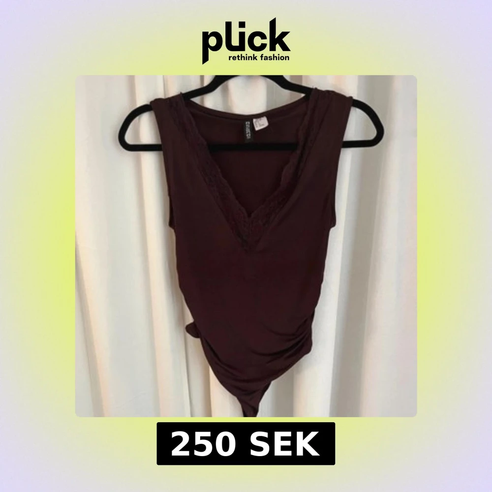 Säljer en vinröd ärmlös body från Divided med snygg v-ringning och spetsdetaljer längs halsen
