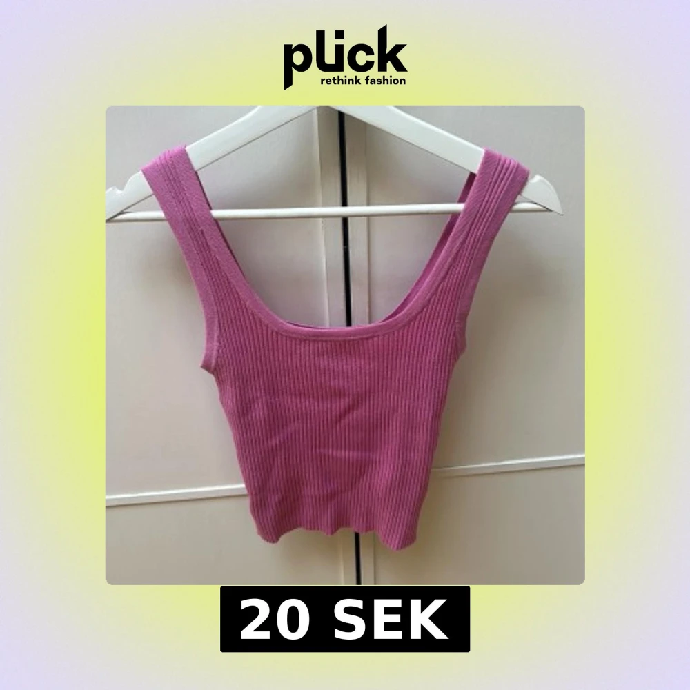 Säljer en ribbad rosa linnetopp med breda axelband och croppad passform. Toppen har en snygg, vågig nederkant och är perfekt för varma dagar. Enkel och stilren design som är lätt att matcha med jeans eller kjol.