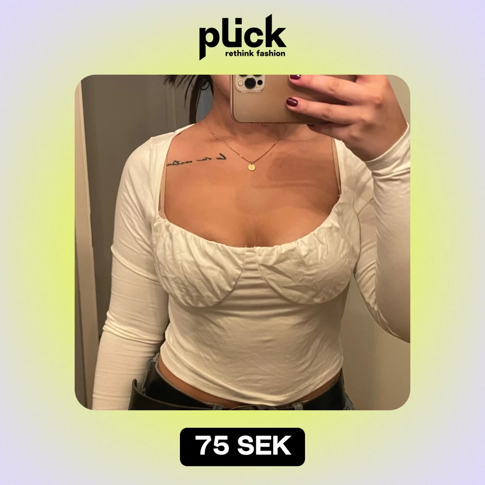 Säljer en snygg vit långärmad topp i nytt skick. Den har en tight passform och en fin detalj med rynkade kupor framtill. Perfekt för både vardag och fest! 🖤