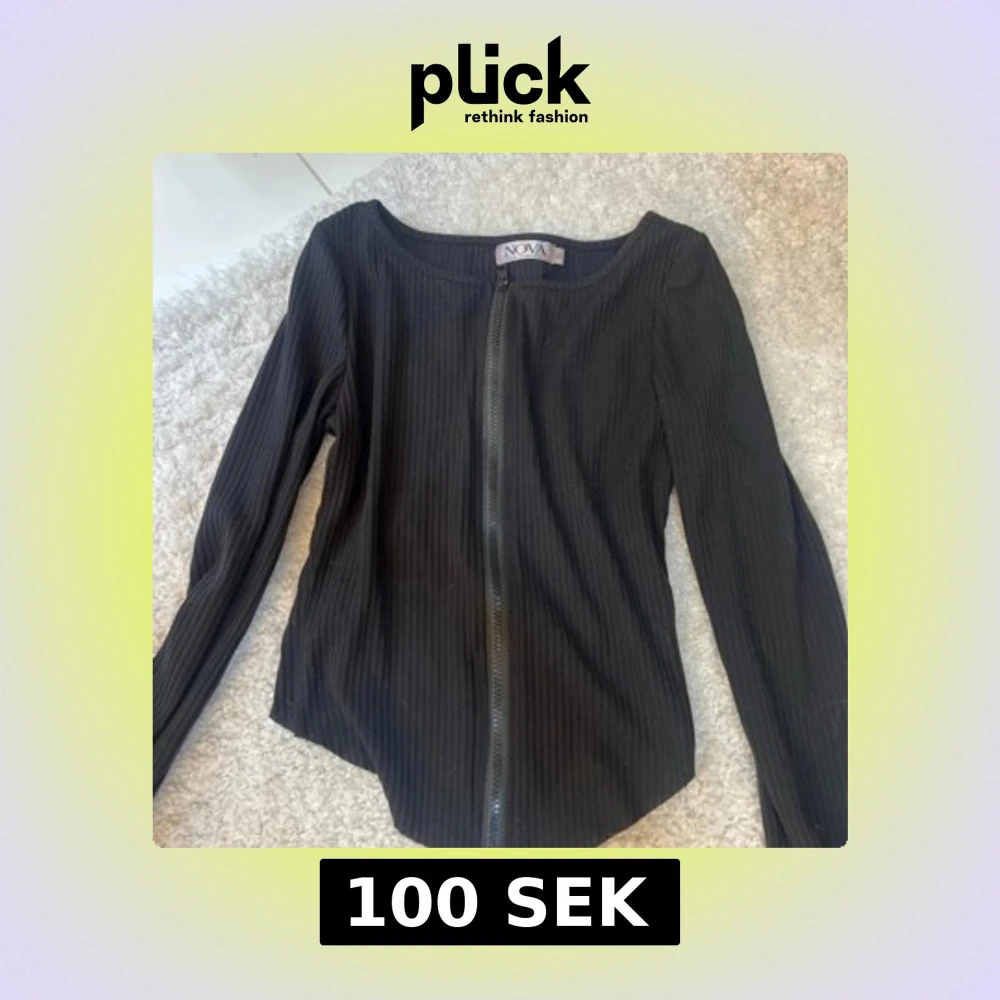 Svart långärmad topp från Nova of Sweden i storlek S. Ribbad struktur och hel dragkedja framtill