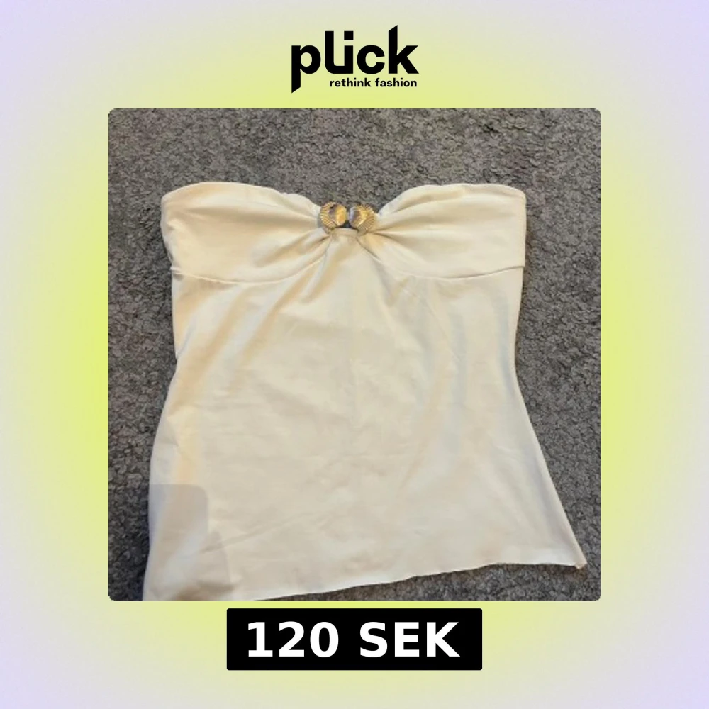 Snygg vit tubtopp med en elegant guldfärgad detalj framtill som ger en lyxig känsla. Toppen är axelbandslös och har en enkel, stilren design som passar perfekt till sommarens outfits.