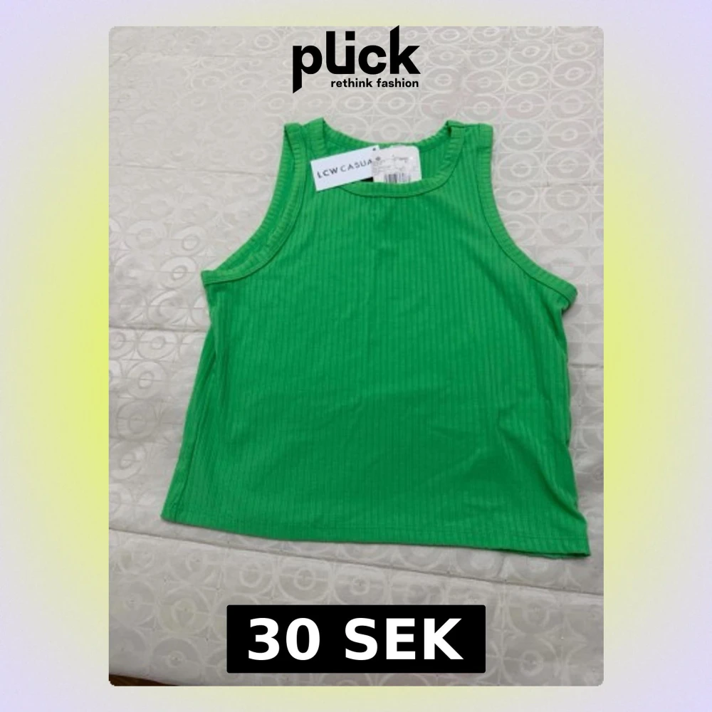 Snygg grön ribbad linnetopp från LCW CASUAL. Toppen är ärmlös med rund halsringning och croppad passform. Perfekt att matcha med jeans eller kjol för en fräsch look.
