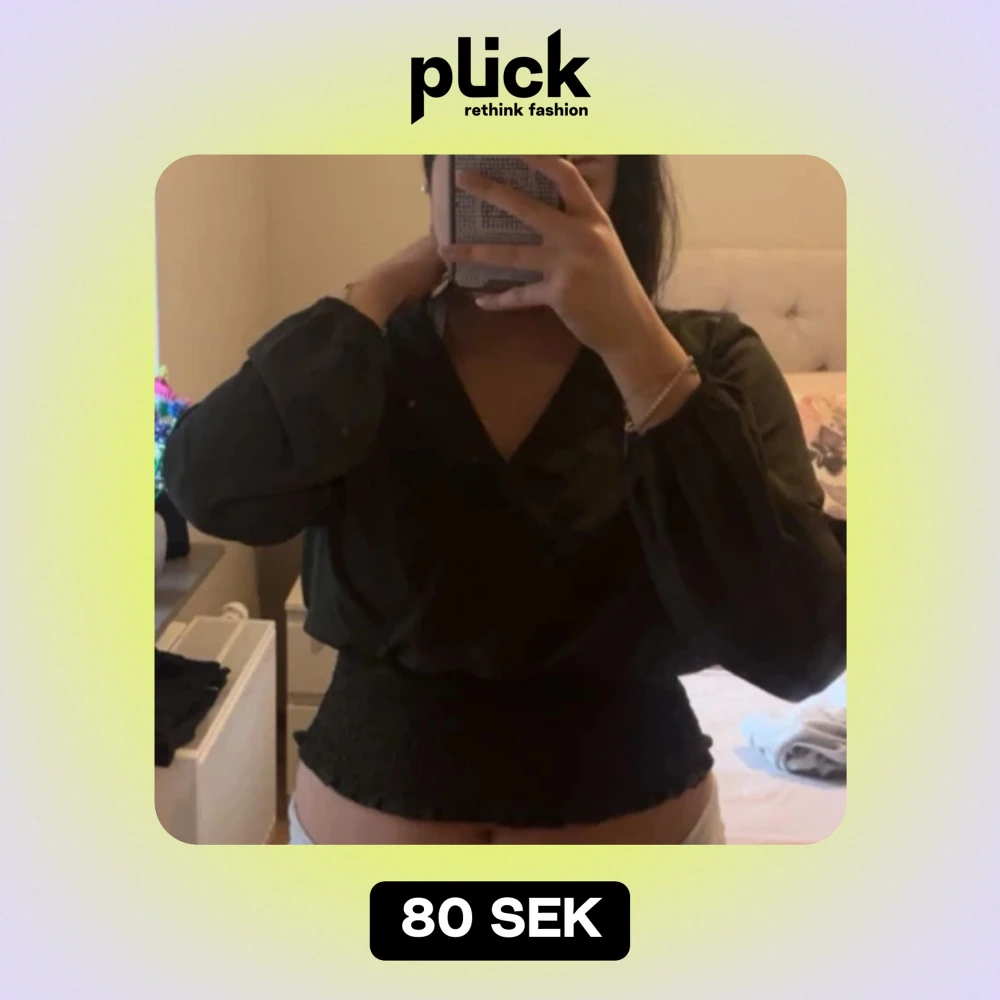 Omlott tröja i en mörkgrön färg! Jättesöt men har tyvärr inte använt den på ett tag, vid sista bilden kan man se att kragen har några lösa trådar men ingen större defekt🤍 Storlek M men passar en L och S med