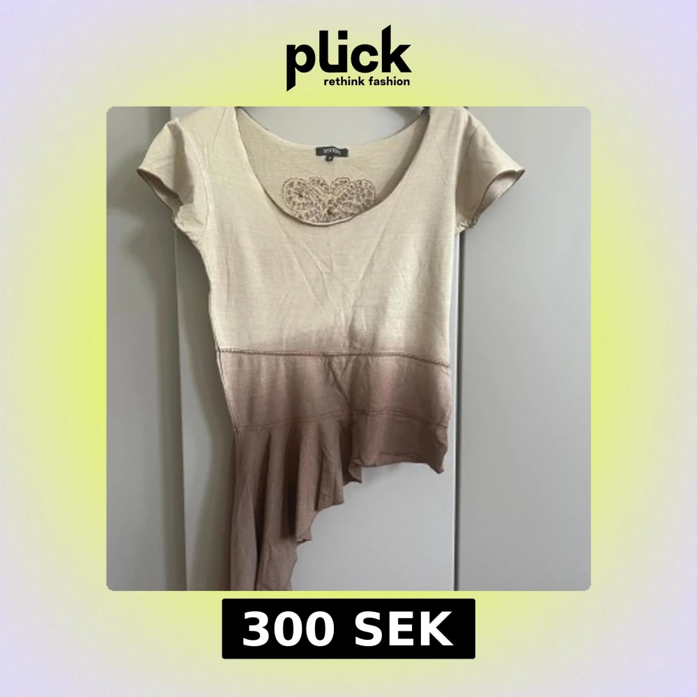 Unik topp från Sisters i beige och brun med asymmetrisk volangkant och broderat hjärta fram och bak. Kortärmad modell i mjuk viskosblandning med stretch. Perfekt för dig som gillar detaljer och en cool, annorlunda look.