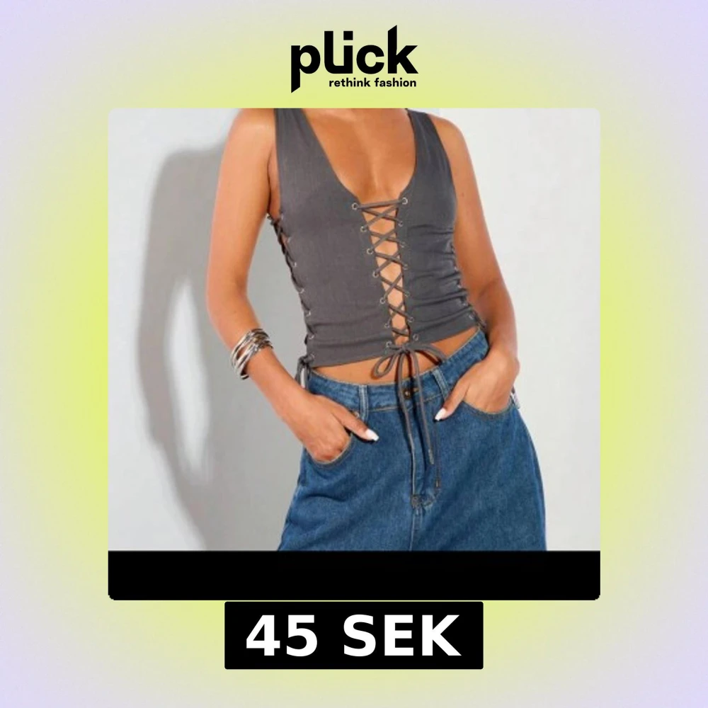Snygg grå korsettväst med snörning på sidorna och fram. Perfekt för att ge en edgy touch till din outfit. Västen har en v-ringad design och är tillverkad i ett stilrent material.