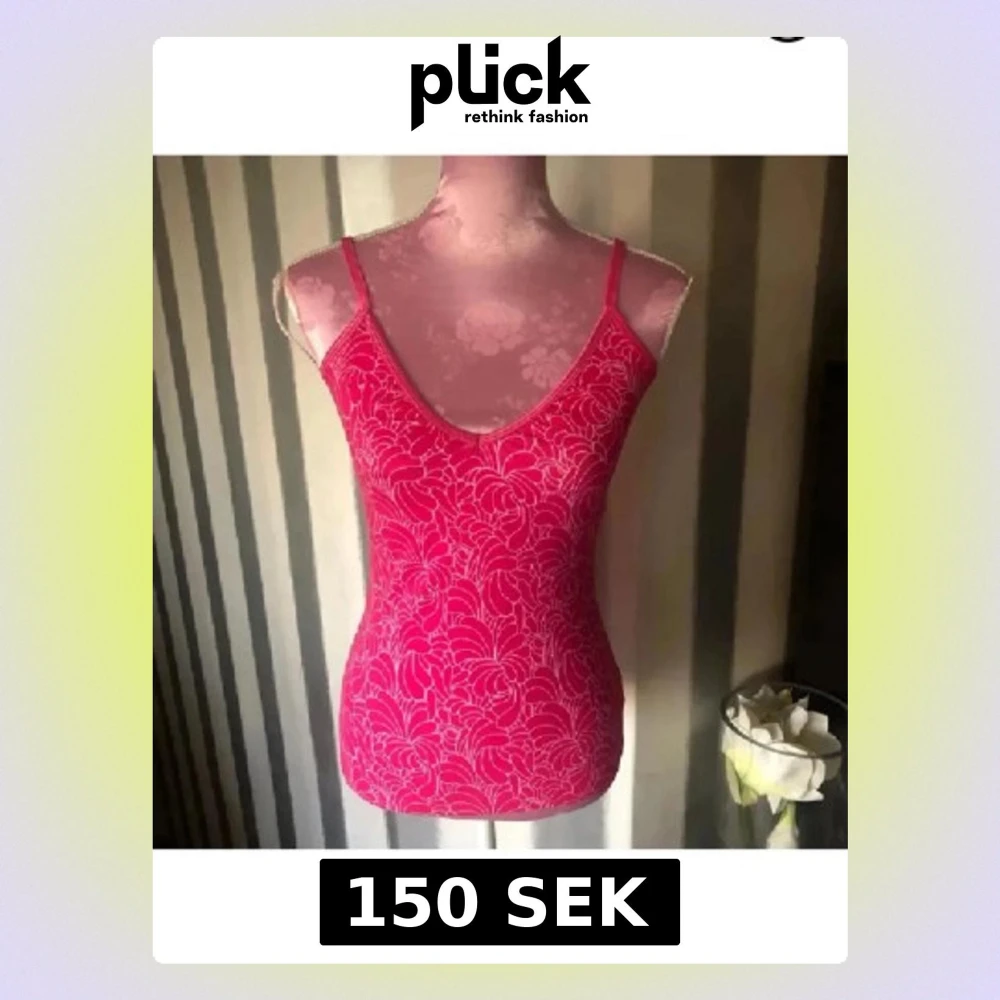 Snygg rosa linnetopp med tunna axelband och blommigt mönster. Toppen har en v-ringad halsringning och är figurnära i modellen. Perfekt för varma dagar eller som layering-plagg. Med inbyggd bh