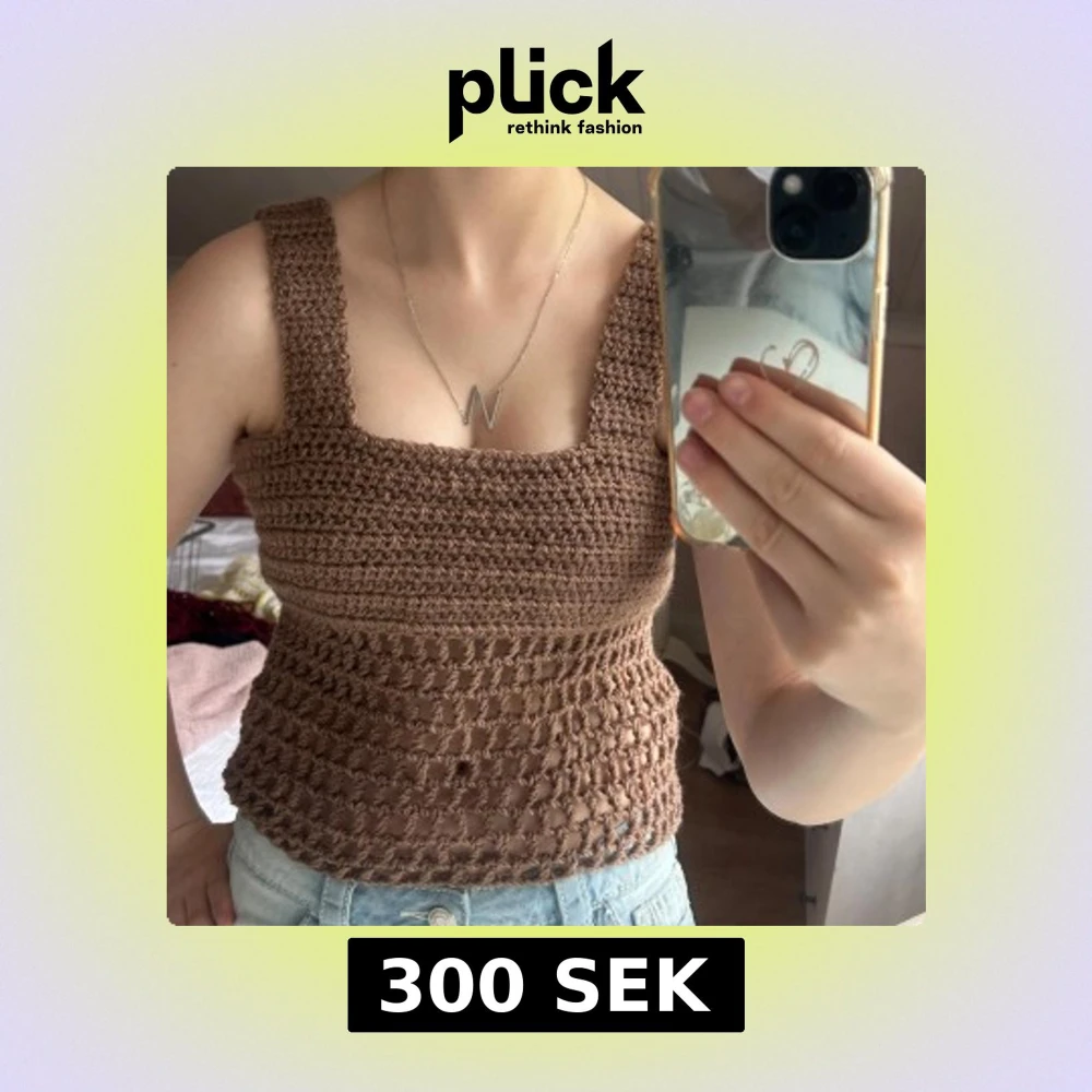 Säljer en brun virkad linnetopp med breda axelband och fyrkantig ringning. Toppen har ett hålmönster nertill och är perfekt för varma dagar. Den är för stor för mig, därför sitter den inte jättebra. Skriv för frågor!💗