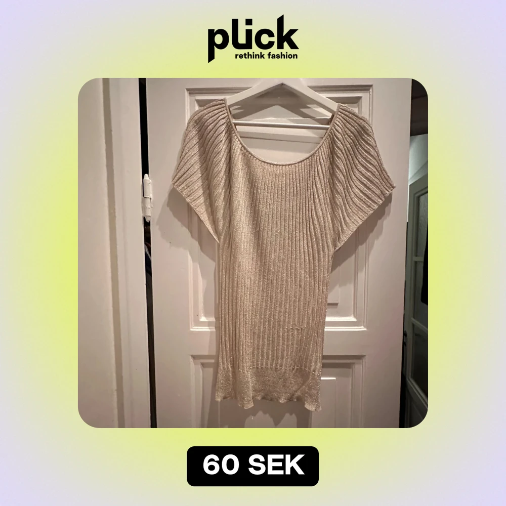 Säljer en superfin glittrig beige nästan ljusrosa nyans topp med ribbad struktur. Materialet är mjukt stretchig och bekvämt, vilket gör den idealisk för både vardag och fest. Toppen är i mycket bra skick och redo för nya äventyr!