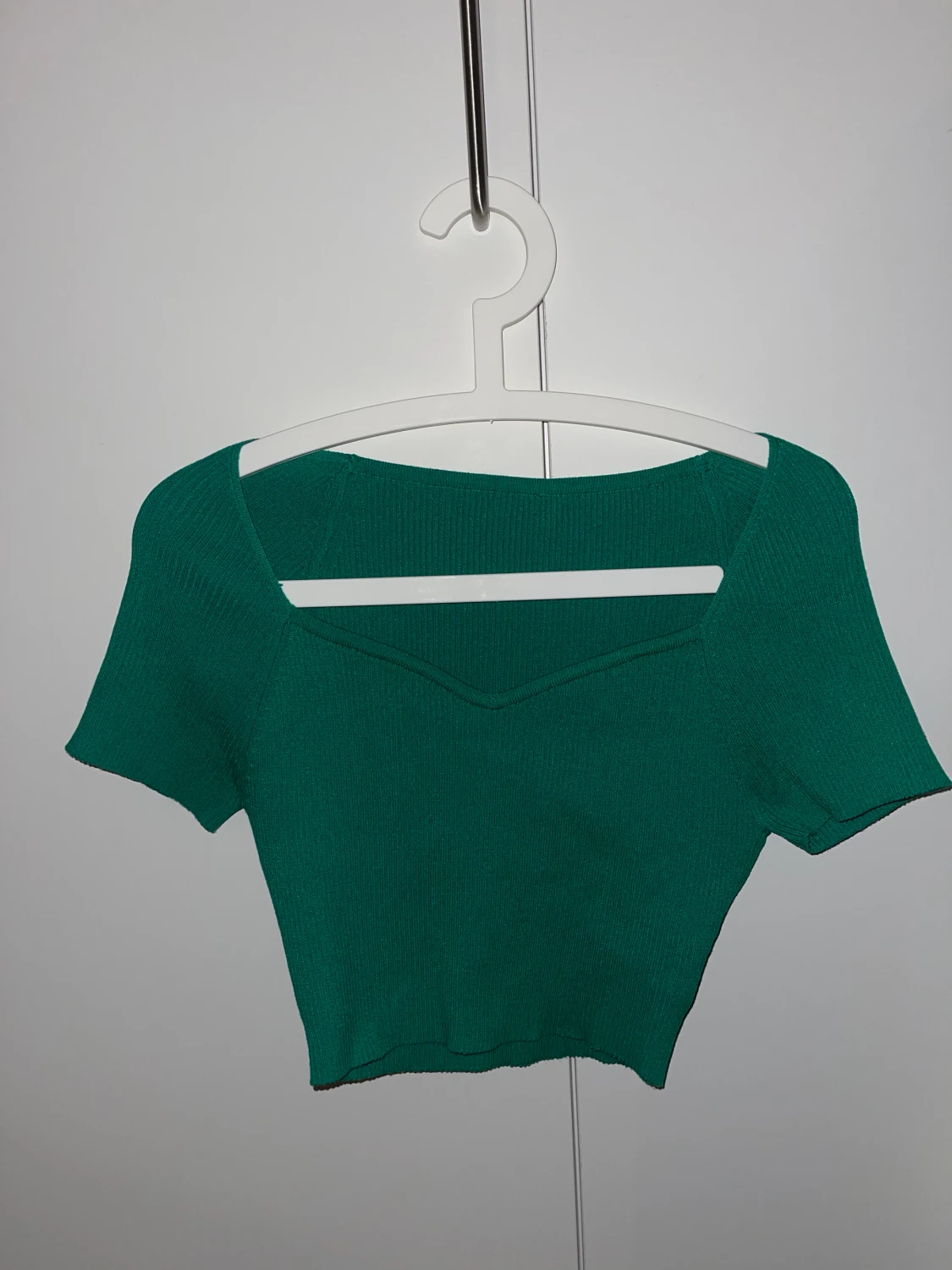 En grön tröja i stickad material typ, nästan helt oanvänd. (Bilden är från hemsidan men fler bilder kan skickas privat)❤️ köparen står för frakten.