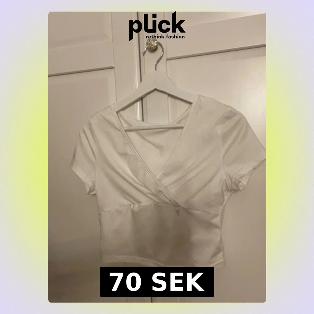 Snygg vit omlottopp med korta ärmar och djup v-ringning. Modellen är croppad och har en stilren, enkel design den SHEIN
