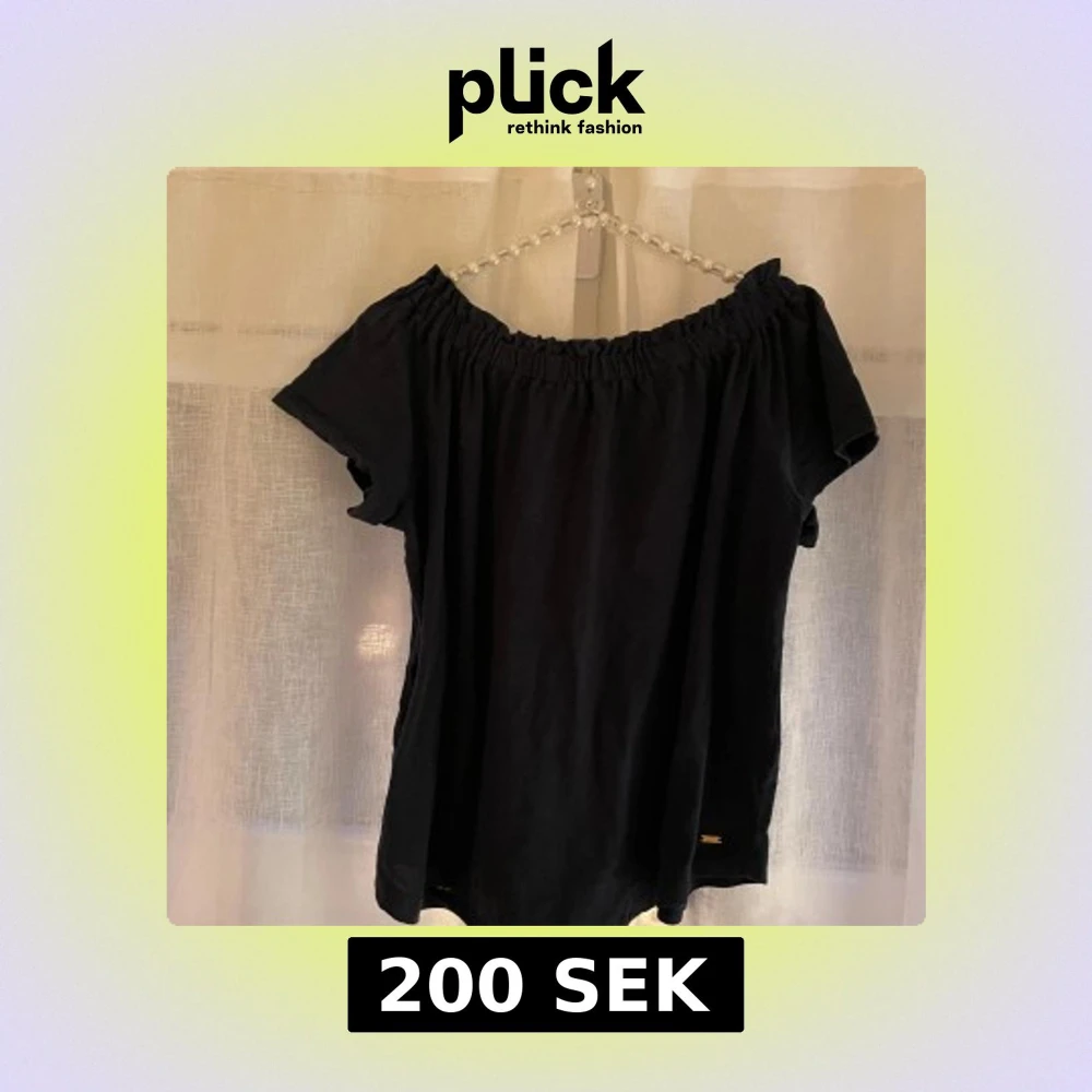 Snygg mörkblå offshoulder topp med korta ärmar. Perfekt för en avslappnad stil. Den har en elastisk kant vid axlarna för en bekväm passform.💘💘😊😊