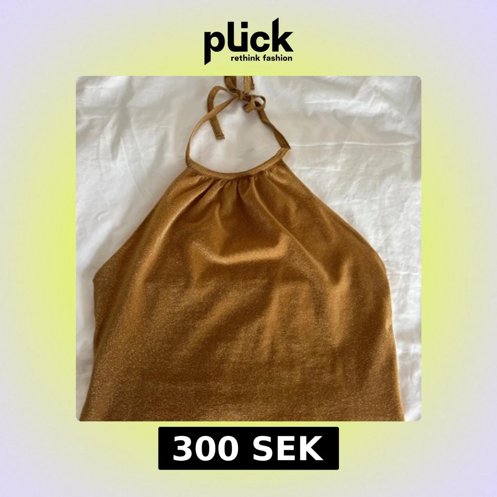 Snygg guldglittrig halterneck topp från Ted Baker. Perfekt för en kväll ute med sitt skimrande material och eleganta design. Toppen har en knytning i nacken och en mjuk, glittrig yta som fångar ljuset fint. Mycket bra skick. Storlek 3, passar mig som vanligtvis har S.