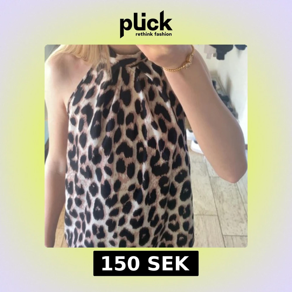 Säljer en snygg halterneck topp med leopardmönster. Toppen är ärmlös och har en hög hals med knytning i nacken.