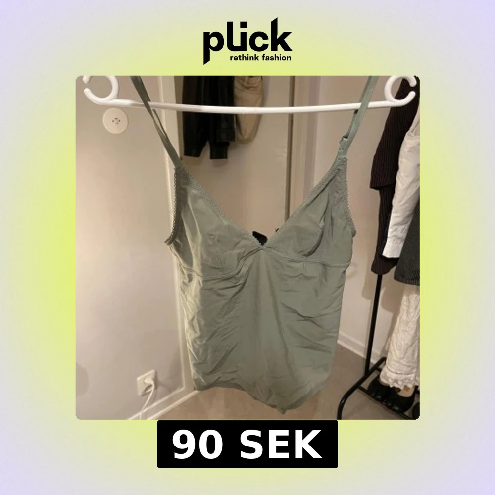 Säljer en ljusgrön linnetopp med smala, justerbara axelband och v-ringad hals. Toppen är enkel och stilren, perfekt att matcha med jeans eller kjol. Materialet känns mjukt och lätt.