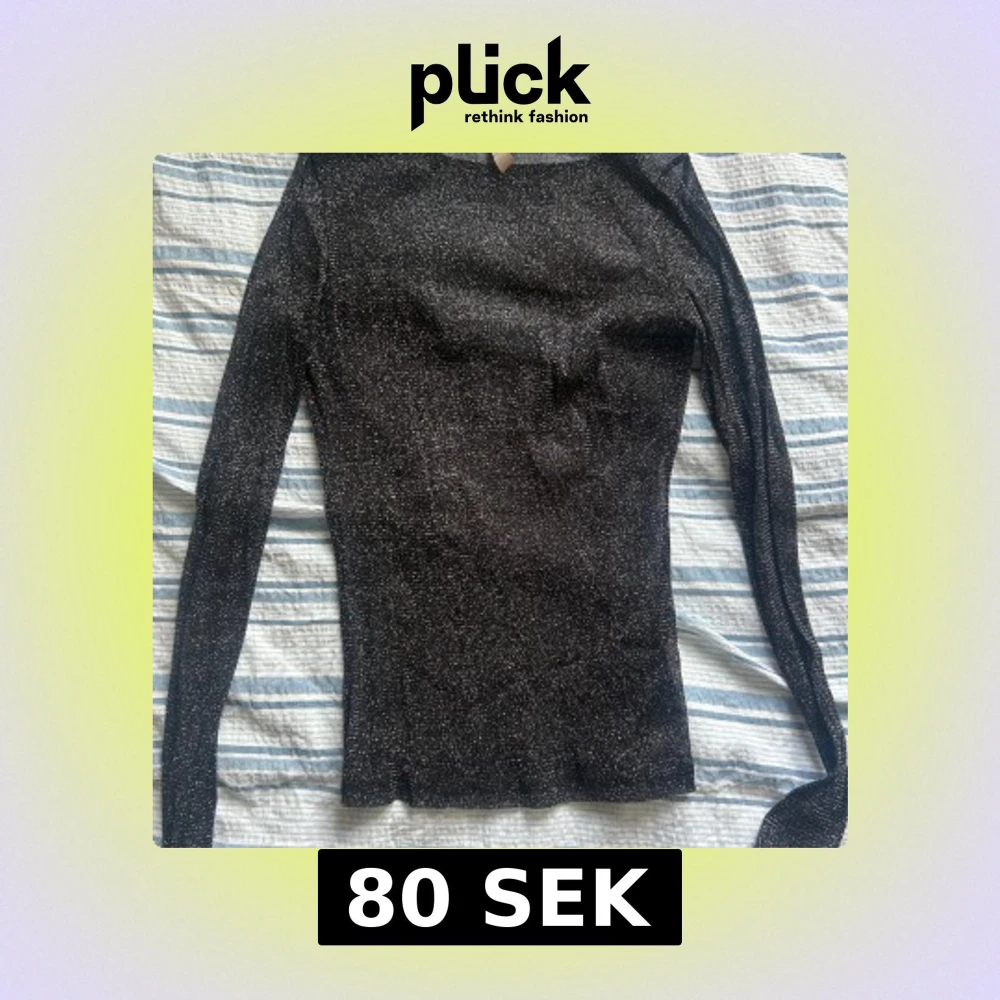 Snygg svart långärmad mesh topp med glittrigt tyg som ger en festlig vibe. Figurnära passform och stretchigt tyg som sitter snyggt på kroppen. Knappt använd💕