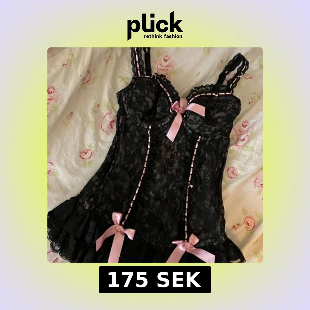 svart spetskorsett från La Senza med rosa detaljer och rosetter. Det står ingen storlek eller kupa men skulle säga att det är S/M
