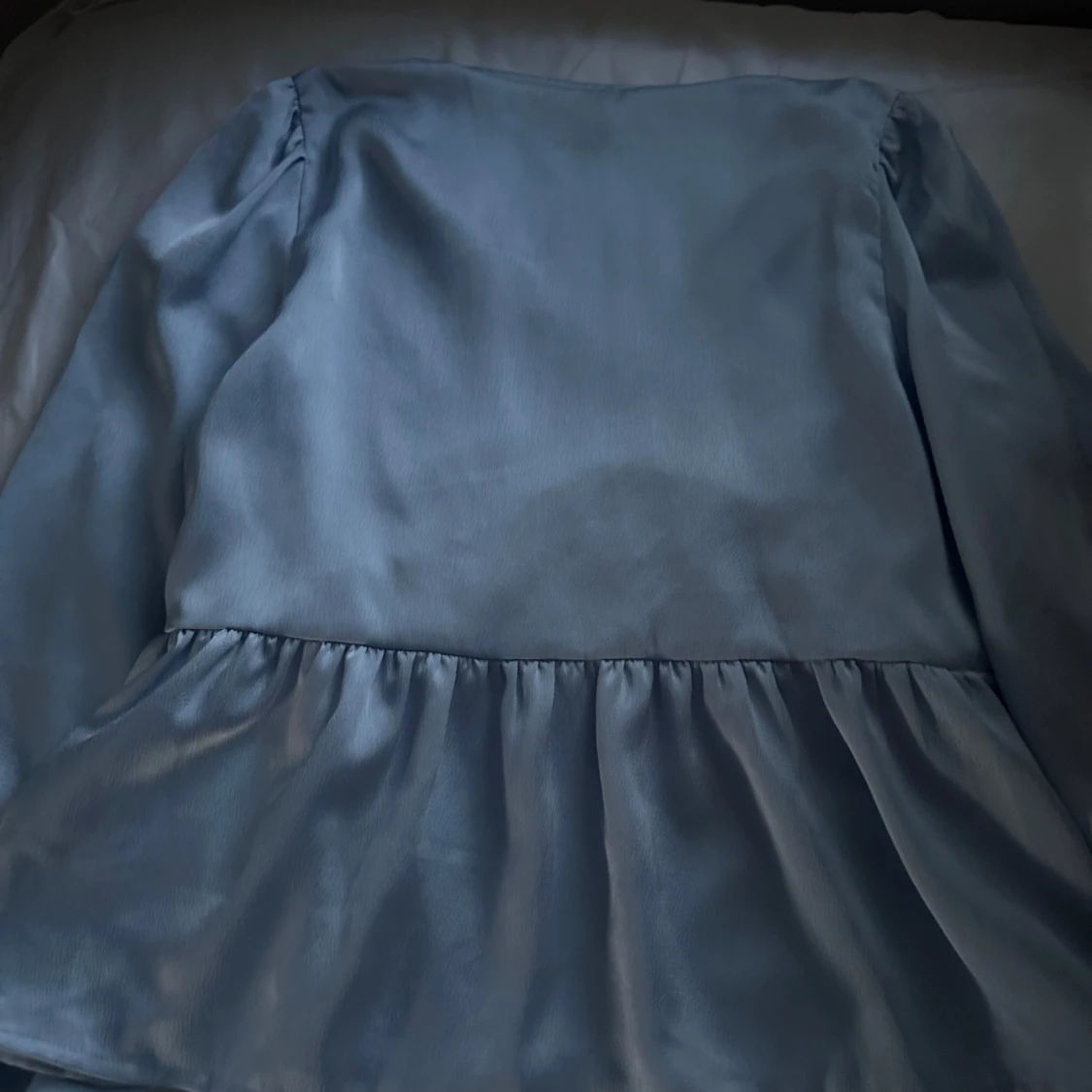 Intresse koll på Supersöt ljusblå blus från Aware i silke. Blusen har v-ringning, långa ärmar och en lätt rynkad midja. Gillar den frf väldigt mycket men håller på att rensa ut garderoben💕