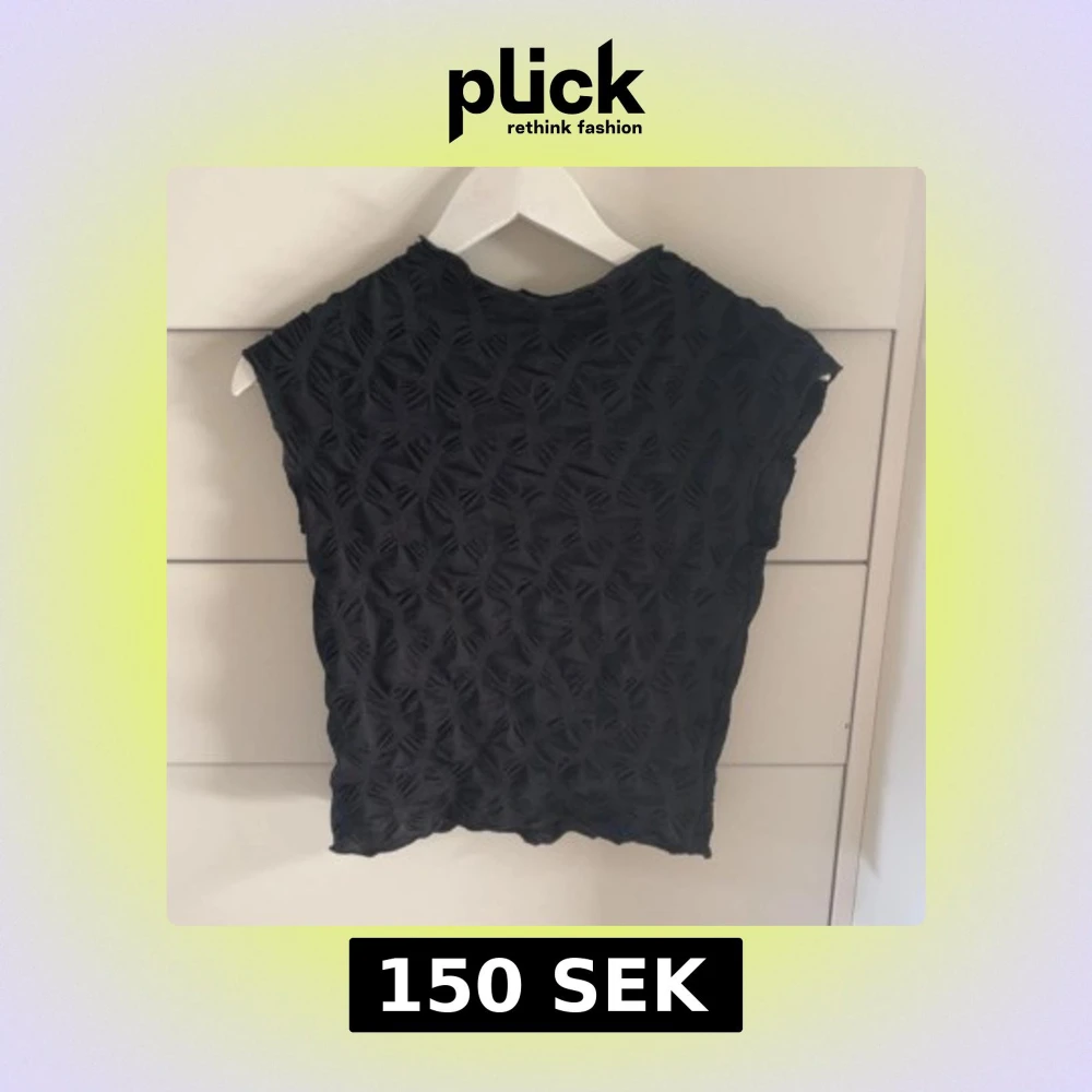 Säljer en svart ärmlös topp med coolt strukturmönster som ger en unik look. Toppen har rund hals och är tillverkad i ett mjukt material som känns skönt mot huden. Perfekt att styla med jeans eller kjol för en trendig outfit.