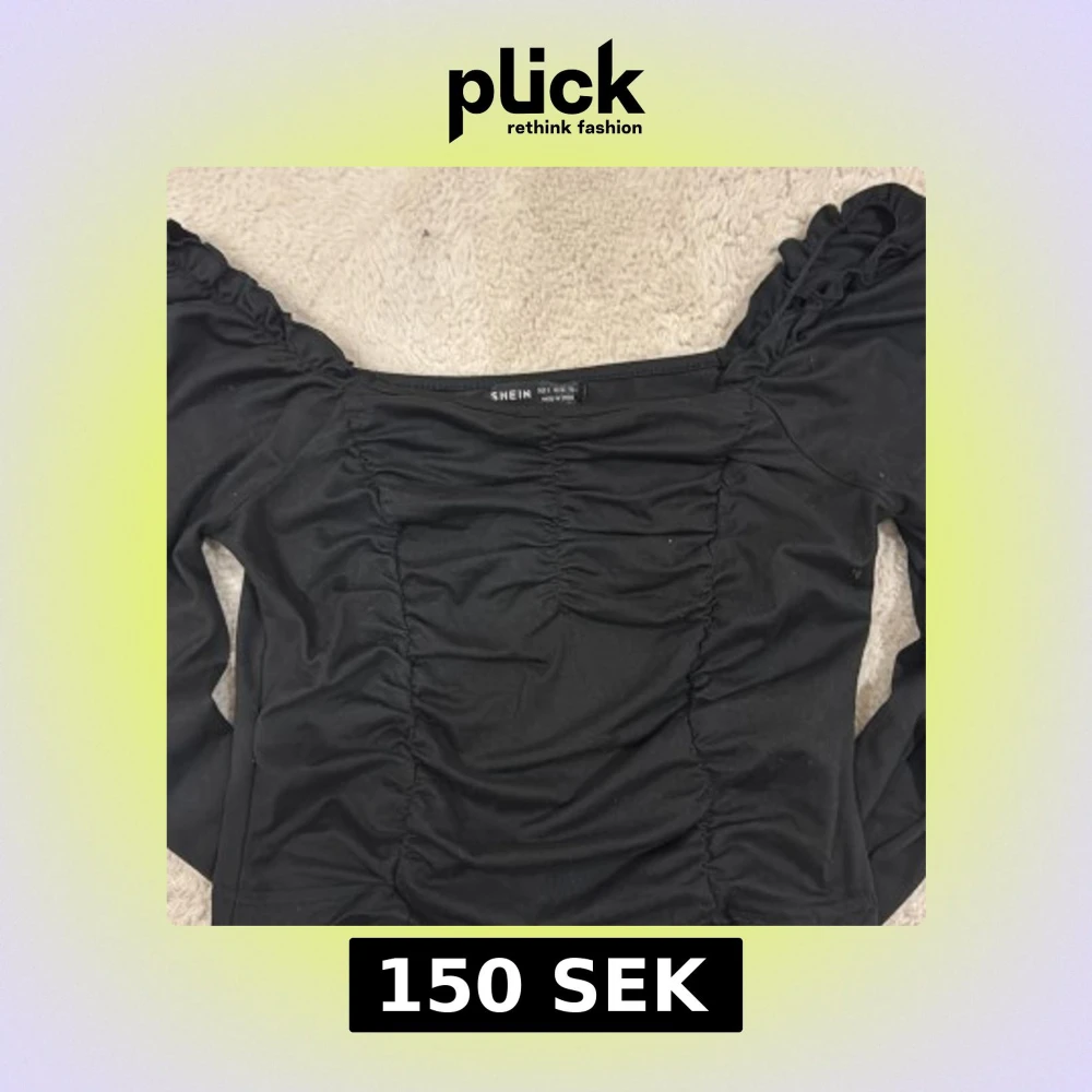 Svart långärmad topp från SHEIN i storlek S. Toppen har rynkade detaljer framtill och puffiga axlar som ger en trendig look. Modellen är figurnära med offshoulder-skärning och tillverkad i ett stretchigt syntetmaterial.