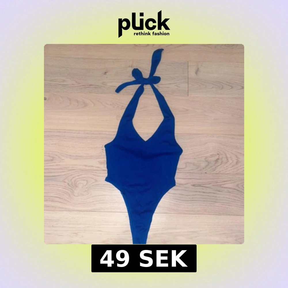 Snygg blå bikini från Fashion Nova i halterneck-modell med knyt i nacken och v-ringad front. Materialet är ribbad syntet som ger en cool struktur. Praktisk knäppning med tryckknappar i grenen. Perfekt för sommarens strandhäng!
