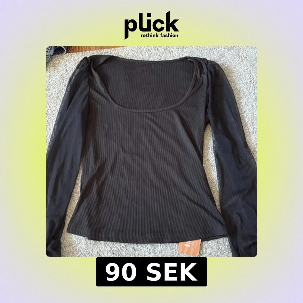 Säljer en stilren svart ribbad topp från Shein med transparenta långa ärmar. Toppen har en rundad halsringning. Passar bra till det mesta. Aldrig använd och därmed lappen kvar.