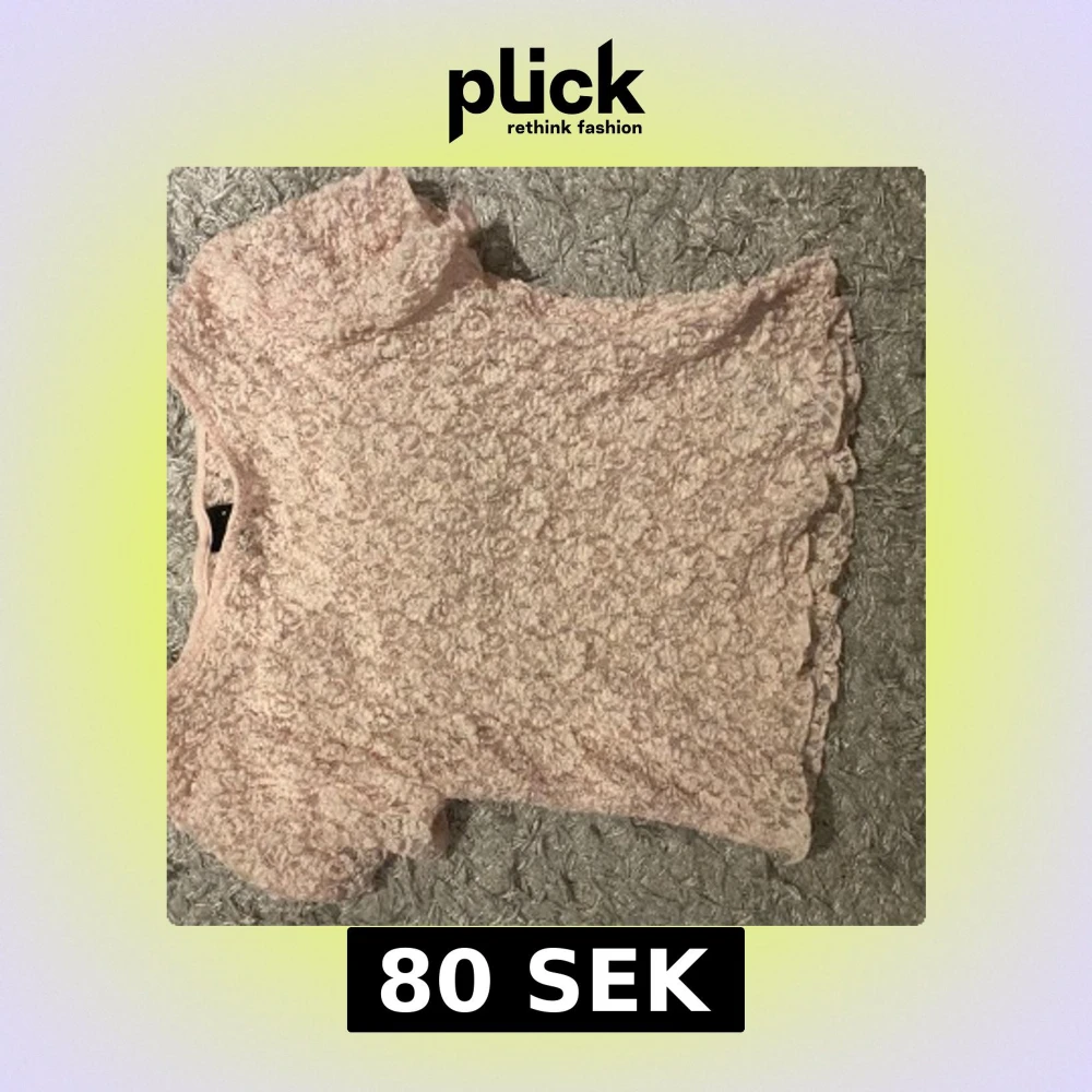 Säljer en ljusrosa blus i spets med korta ärmar och rund hals. Blusen har ett romantiskt blommigt spetsmönster och är lätt transparent. Perfekt för dig som gillar söta detaljer och mjuka färger.