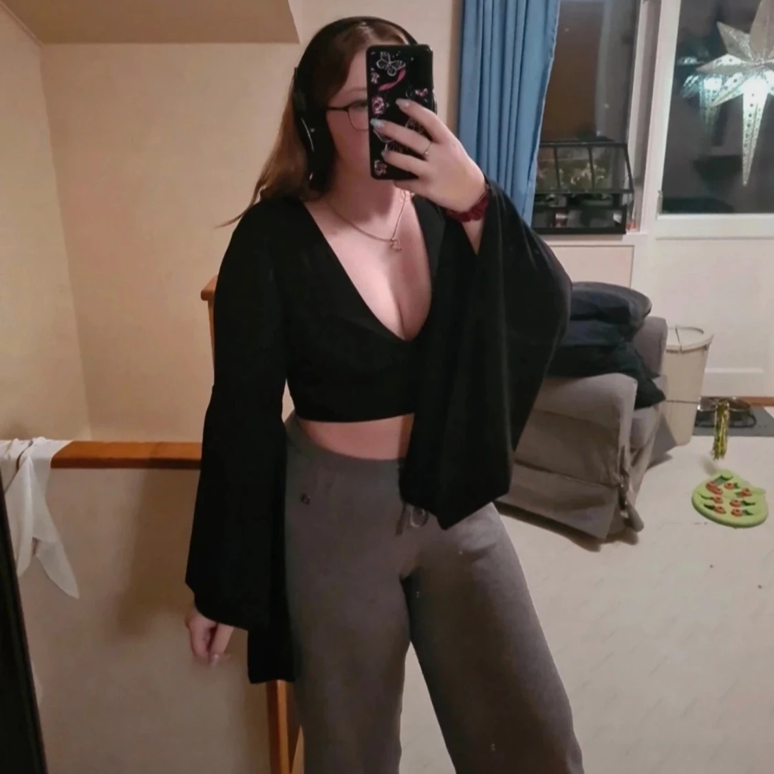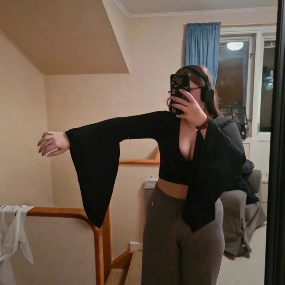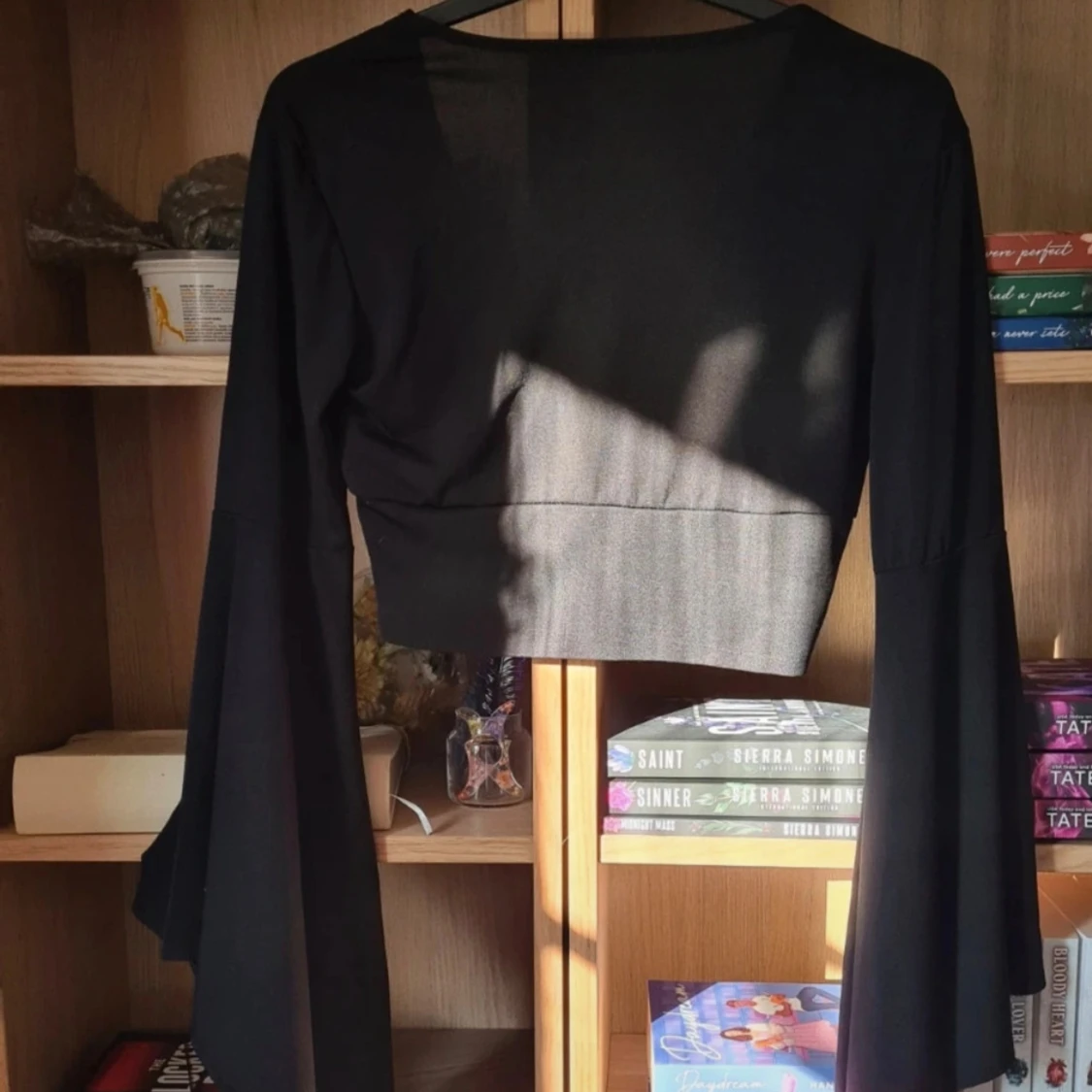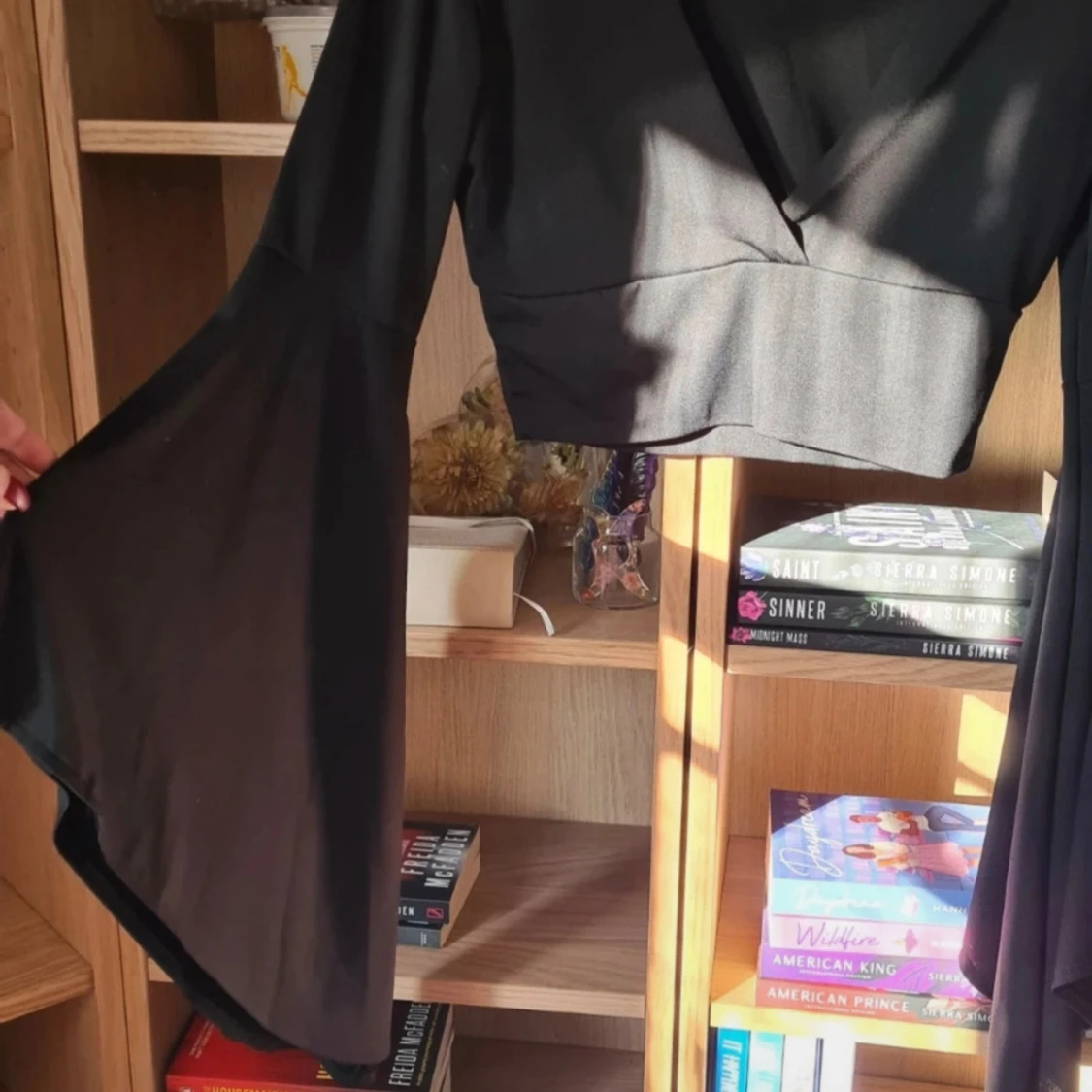 Svart croppad topp med vida ärmar