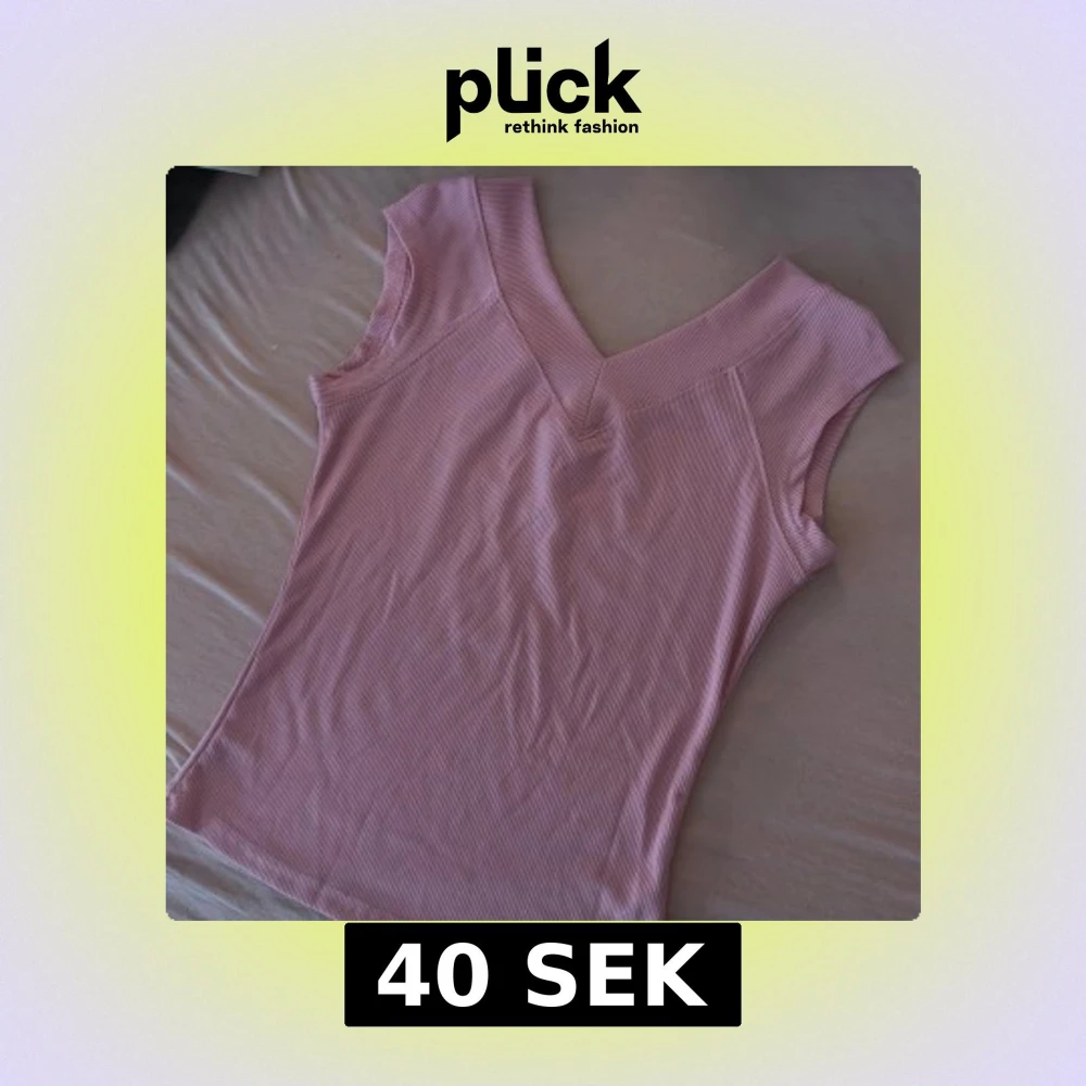 Säljer en söt rosa ribbad topp med v-ringning. Perfekt för varma dagar och enkel att matcha med olika outfits.