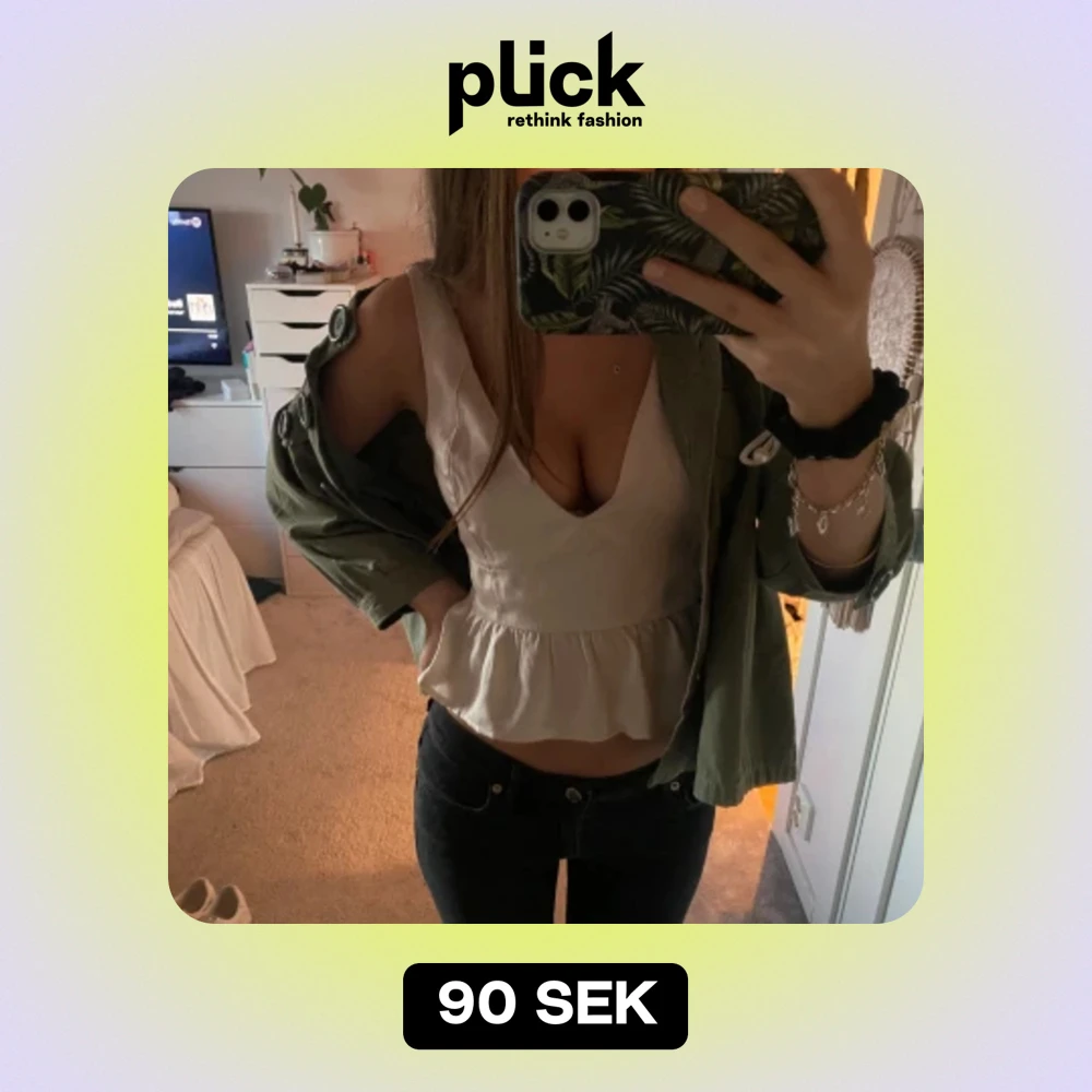Jättesöt topp i satin-liknande material, tyvär lite stor på mig🤍