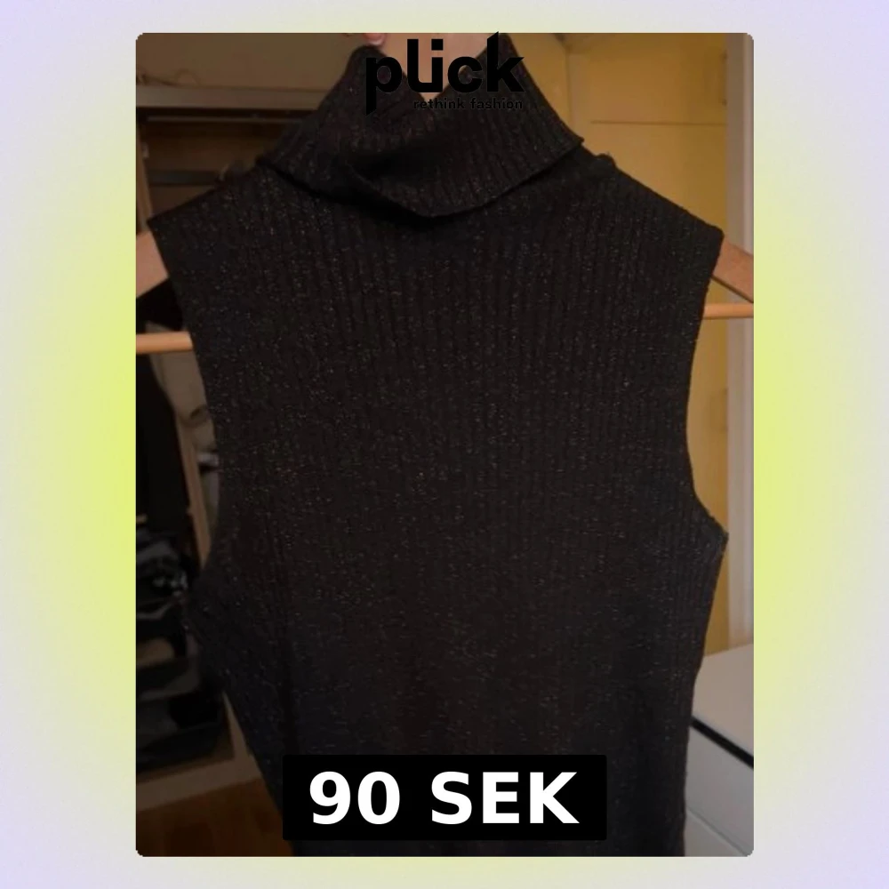 svart glittrig topp med polokrage, står ingen storlek men passar mig xs/s. Köpt secondhand men fint skick