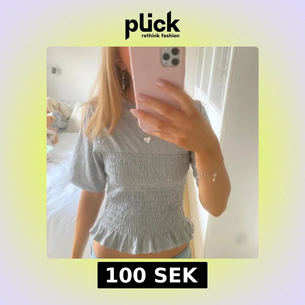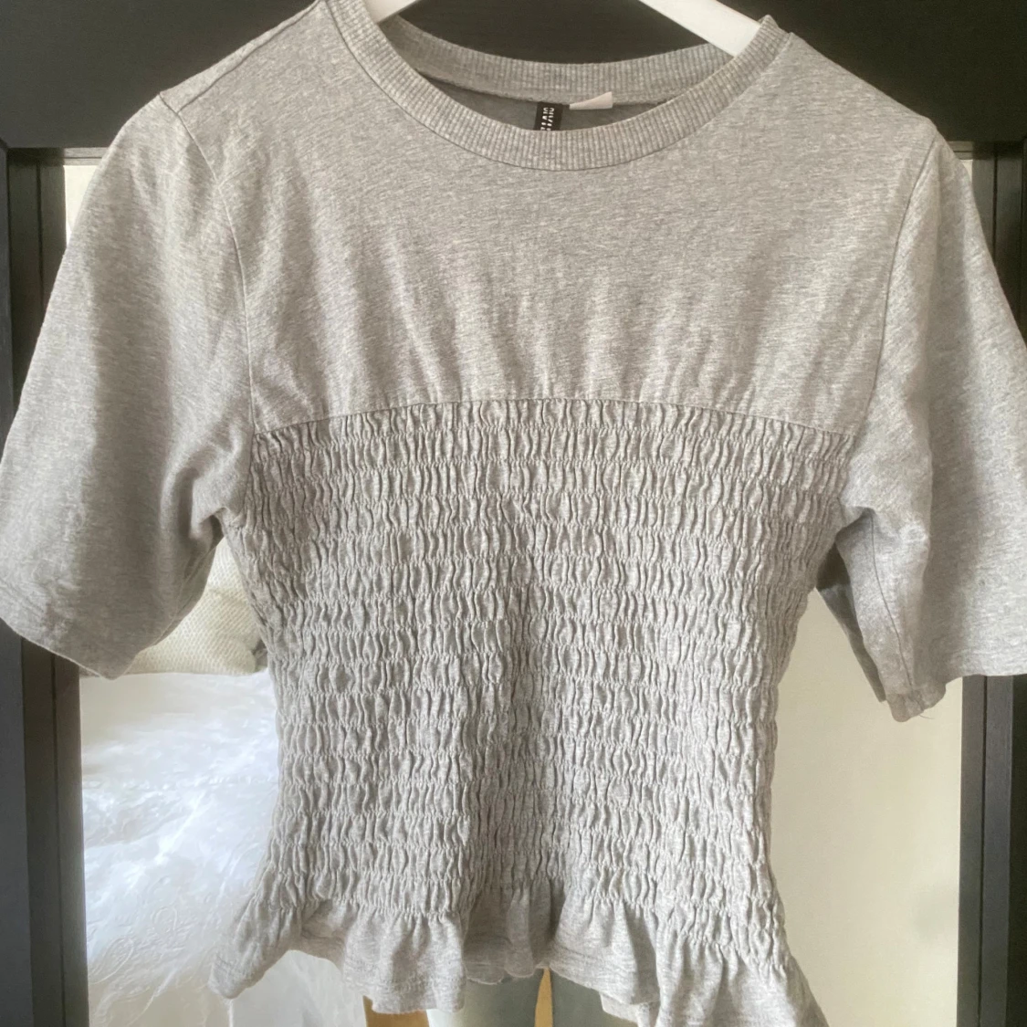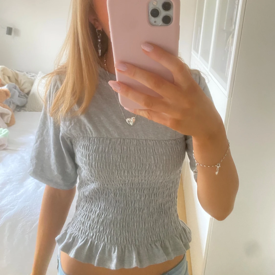 Jättefin grå topp från H&M. Den har smockad midja och volang nertill. Använd fåtal gånger och nästan i nyskick💕
