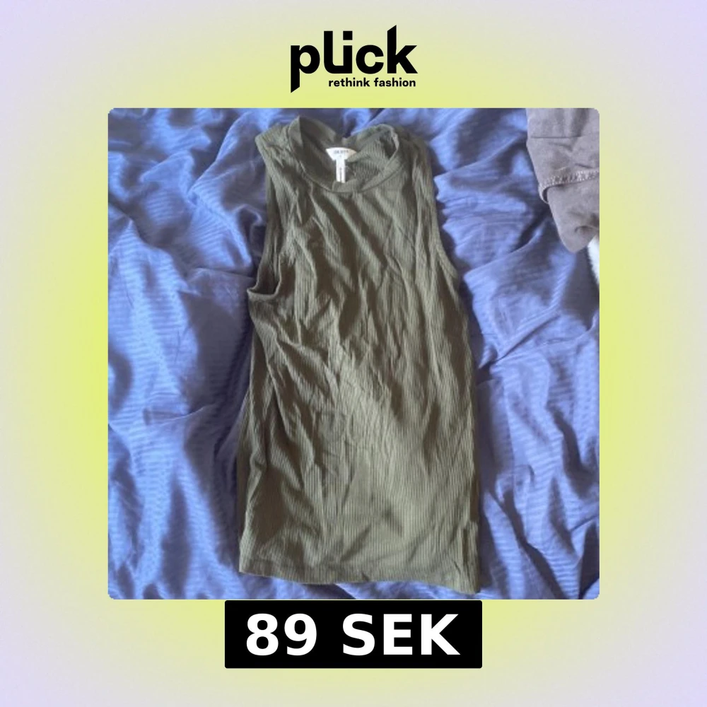 Säljer en olivgrön ribbad linnetopp från Object i storlek S. Toppen är ärmlös med hög hals och har en tight passform som framhäver figuren. Perfekt till sommaren och enkel att matcha med jeans eller kjol.