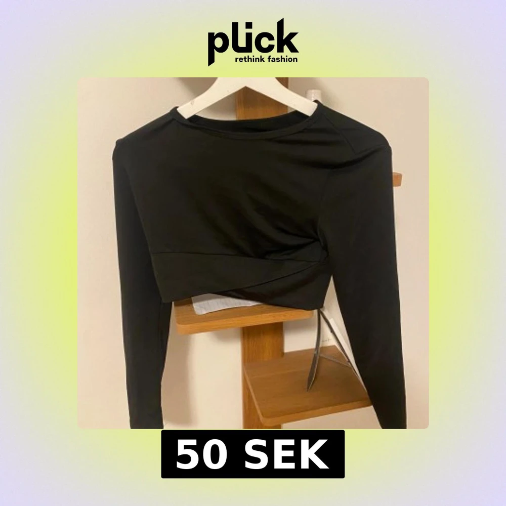Svart långärmad croppad topp från SHEIN med rund halsringning och stilren twistad detalj framtill. Tillverkad i stretchigt material som sitter snyggt på kroppen. Perfekt för dig som gillar en clean och modern look. Funkar perfekt till gymmet också.