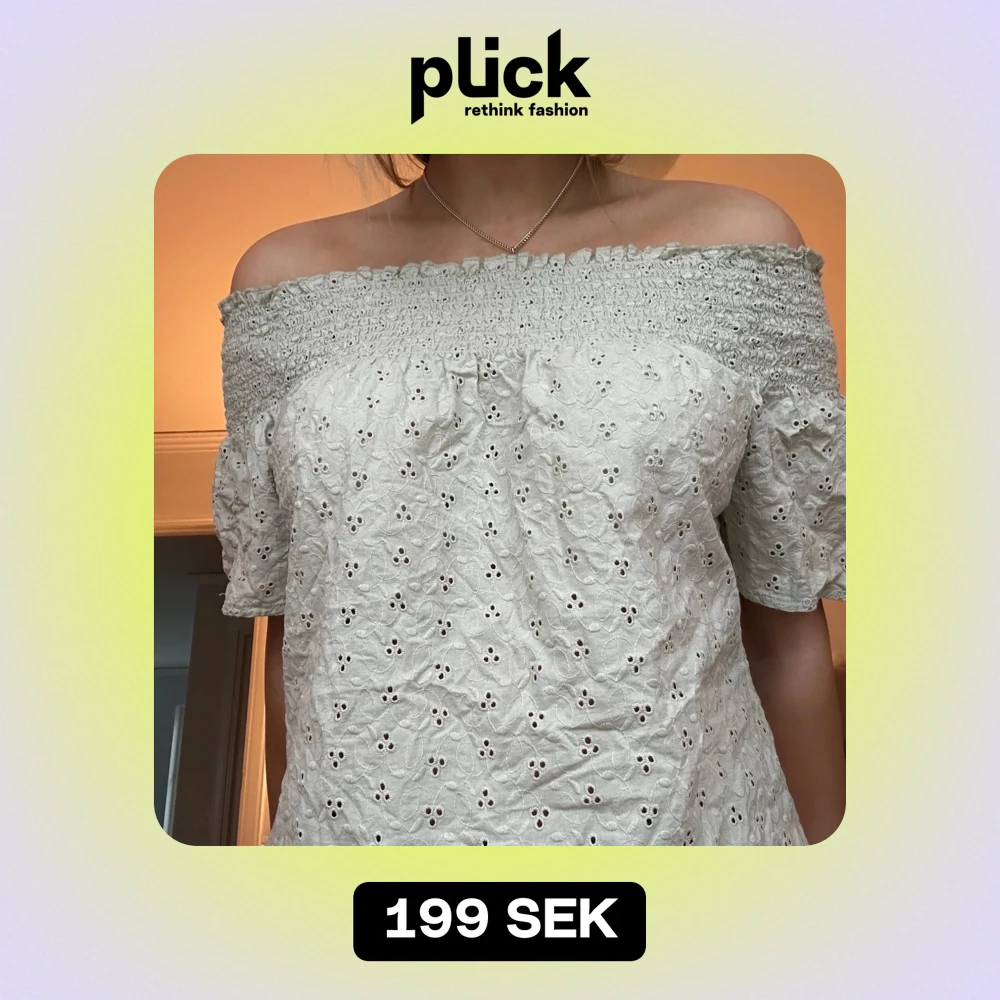 Vit offshoulder blus med spetsdetaljer - Säljer en söt vit offshoulder blus med spetsdetaljer. Perfekt för varma dagar med sin luftiga design och romantiska stil. Blusen har en vacker spetskant som ger en feminin touch.