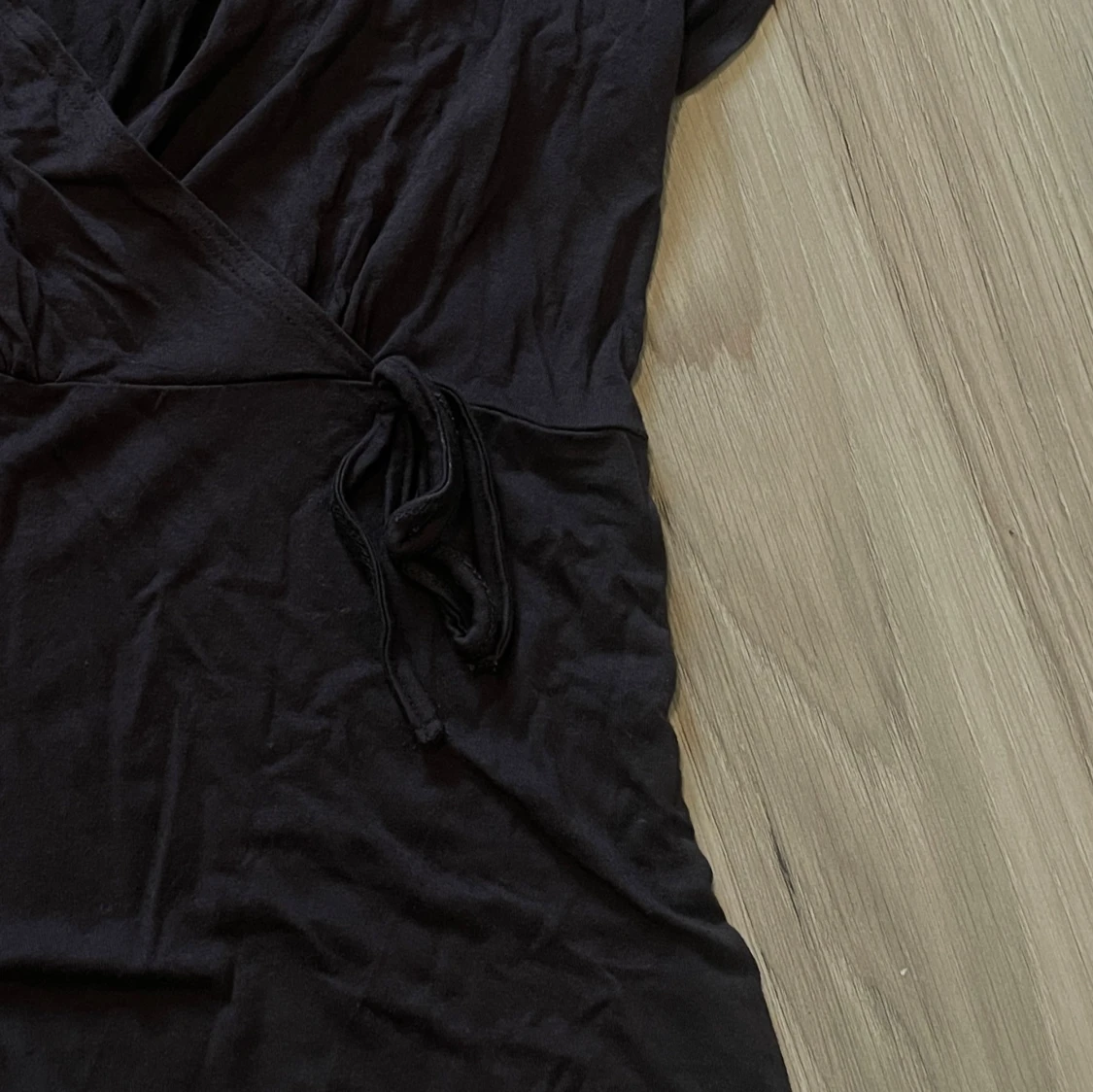 Svart omlottopp från Orsay med v-ringning och knyt i sidan. Toppen har korta ärmar och är figurnära i modellen. Perfekt att styla med jeans eller kjol för en snygg look.