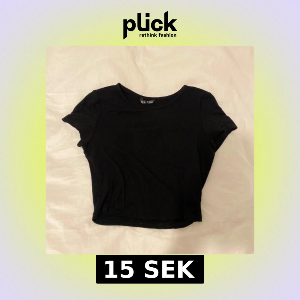 Enkel och stilren svart croppad topp från SHEIN i storlek S. Modellen har rund halsringning och korta ärmar, perfekt att matcha med jeans eller kjol. Tunn och mjuk i materialet, passar dig som gillar minimalistisk stil.