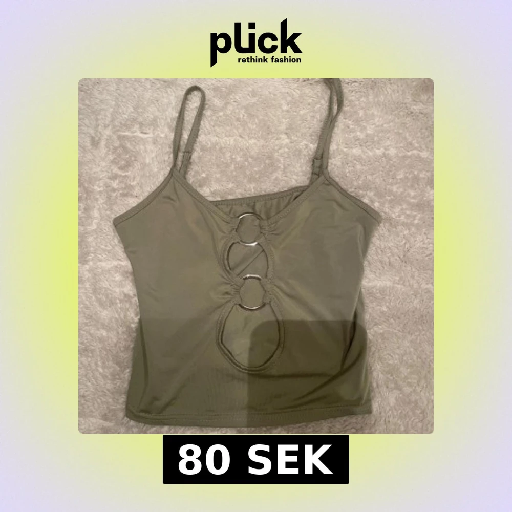 Snygg grön croppad linnetopp med unika utskärningar framtill. Toppen har smala axelband och en tight passform